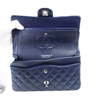 Chanel Classic Double Flap Medium Navy Lambskin Silver