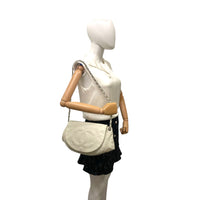 This elegant vintageBag from Chanel in the popular halfmoon shape is made of durable white Caviar-Leather made. It features a silver-tone chain with a leather thread that allows it to be worn as a crossbody. The compact design offers space for the essentials and is perfect for a stylish appearance in everyday life or in the evening. The inner lining is made of high-quality fabric. The leather is in very good condition Condition with only minimal signs of wear, especially given the light color. All hardware, including the zipper and silver hardware, is shiny and well preserved.