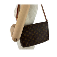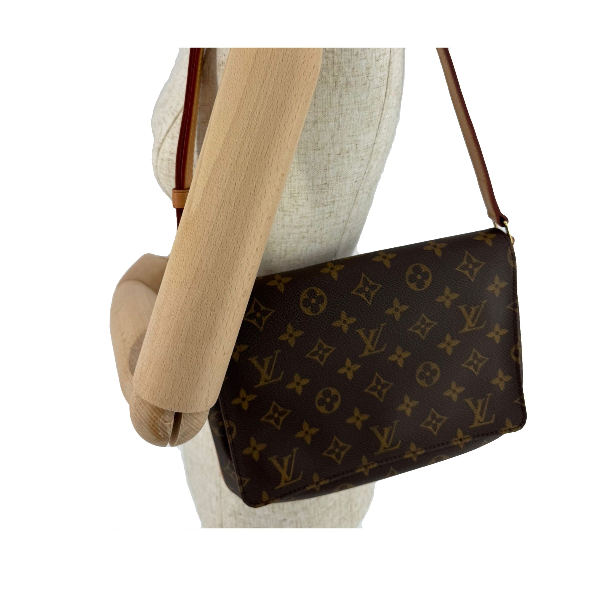 This Louis Vuitton Musette Tango in the long strap version was made of brown Monogram canvas. The Bag has a flat leather shoulder strap, a flap with magnetic closure and a slip pocket in the interior. The Bag is best worn across the body.