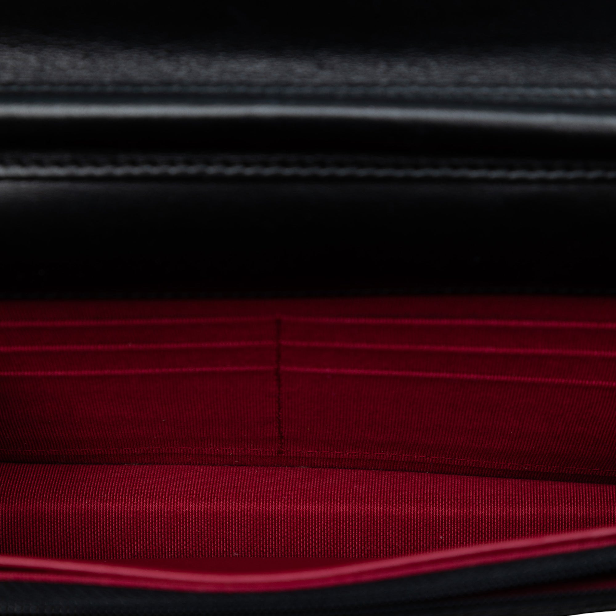 Condition: The bag shows slight signs of wear on the outside, including minor creases and small stains, including on the strap. The hardware, including the clasp and zipper, has fine scratches. The interior has slight scratches and small stains.
