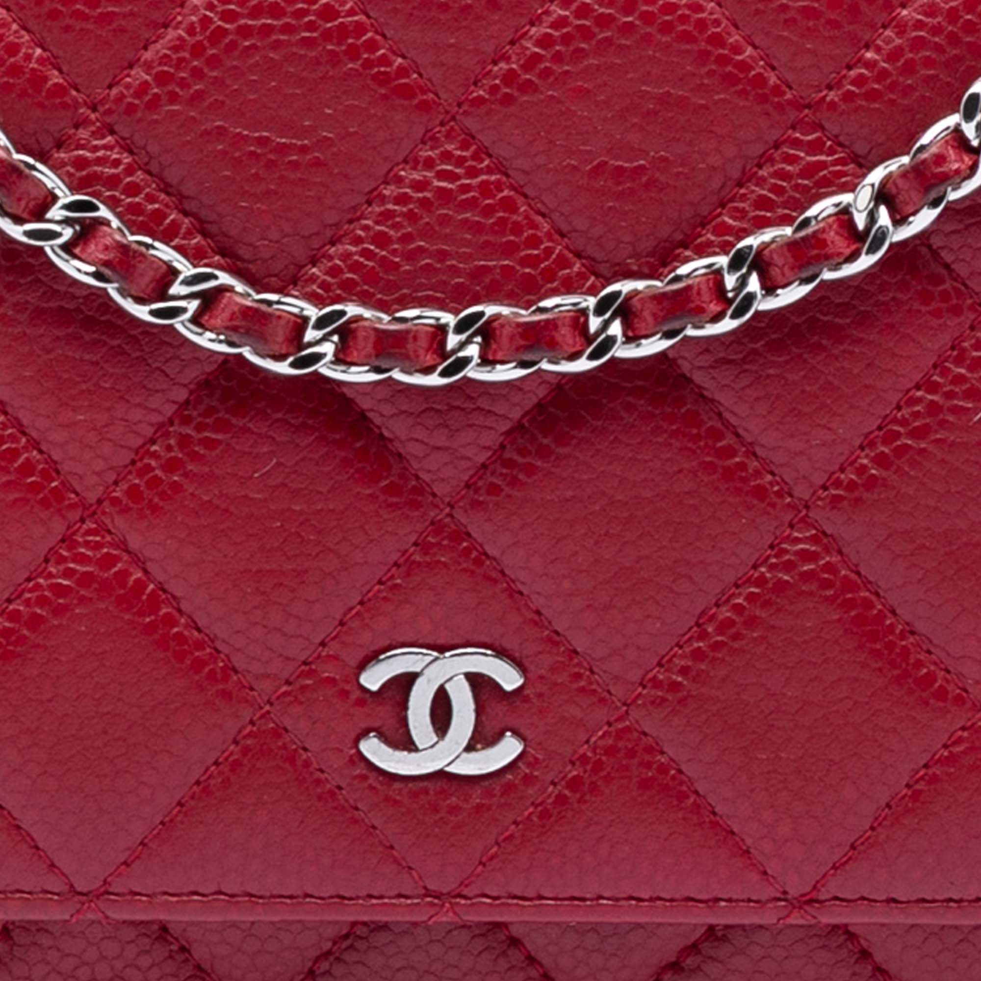 Chanel Wallet on Chain Red Caviar Silver