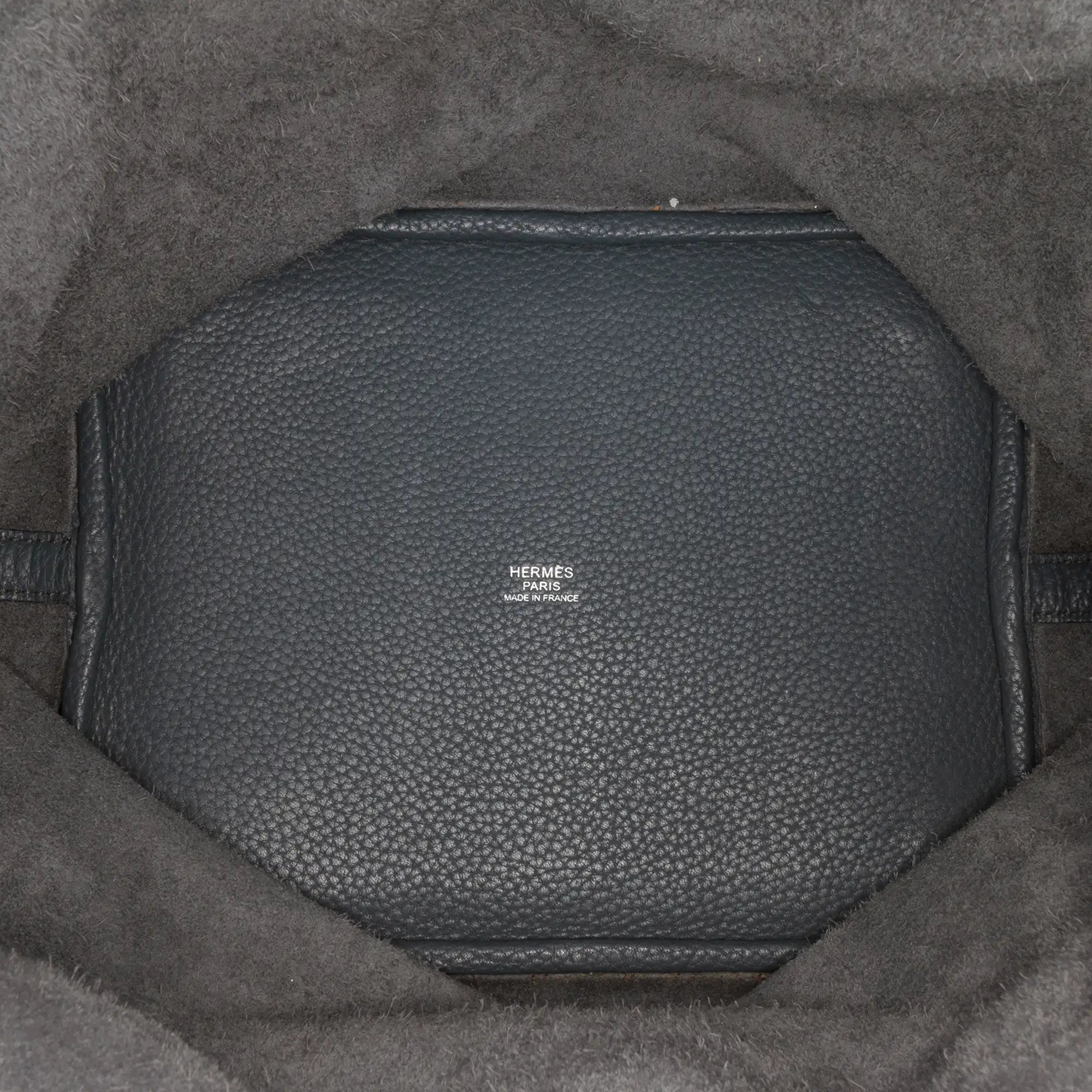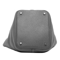 This beautiful Picotin 22 is handcrafted from gray Clemence leather and decorated with silver hardware. The pull-through top closure and simple flat leather handles make it a minimalist must-have.