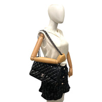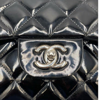 Chanel Classic Double Flap Jumbo Black Patent Leather Silver