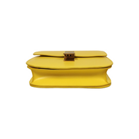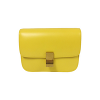 The Céline Classic Box is one of the most popular models from the traditional French company. This example is made of calf leather and has gold hardware. The Bag is secured via a snap fastener under the flap on the front. The interior is lined with the finest lamb leather and has two pockets and an additional zippered compartment. The shoulder strap is removable and can be varied in size. With him she can Bag Can be worn over the shoulder or crossbody.