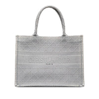 Dior Book Tote Medium Gray Embroidered Cannage Canvas