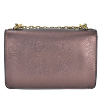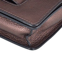 This Dior J'Adior Mini Chain Flap is crafted from bronze grained leather with a metallic finish. The Bag has a pass-through with gold J'Adior letters on the front flap as well as a slip pocket and card slots in the interior. With a gold chain strap you can Bag can also be worn over the shoulder.