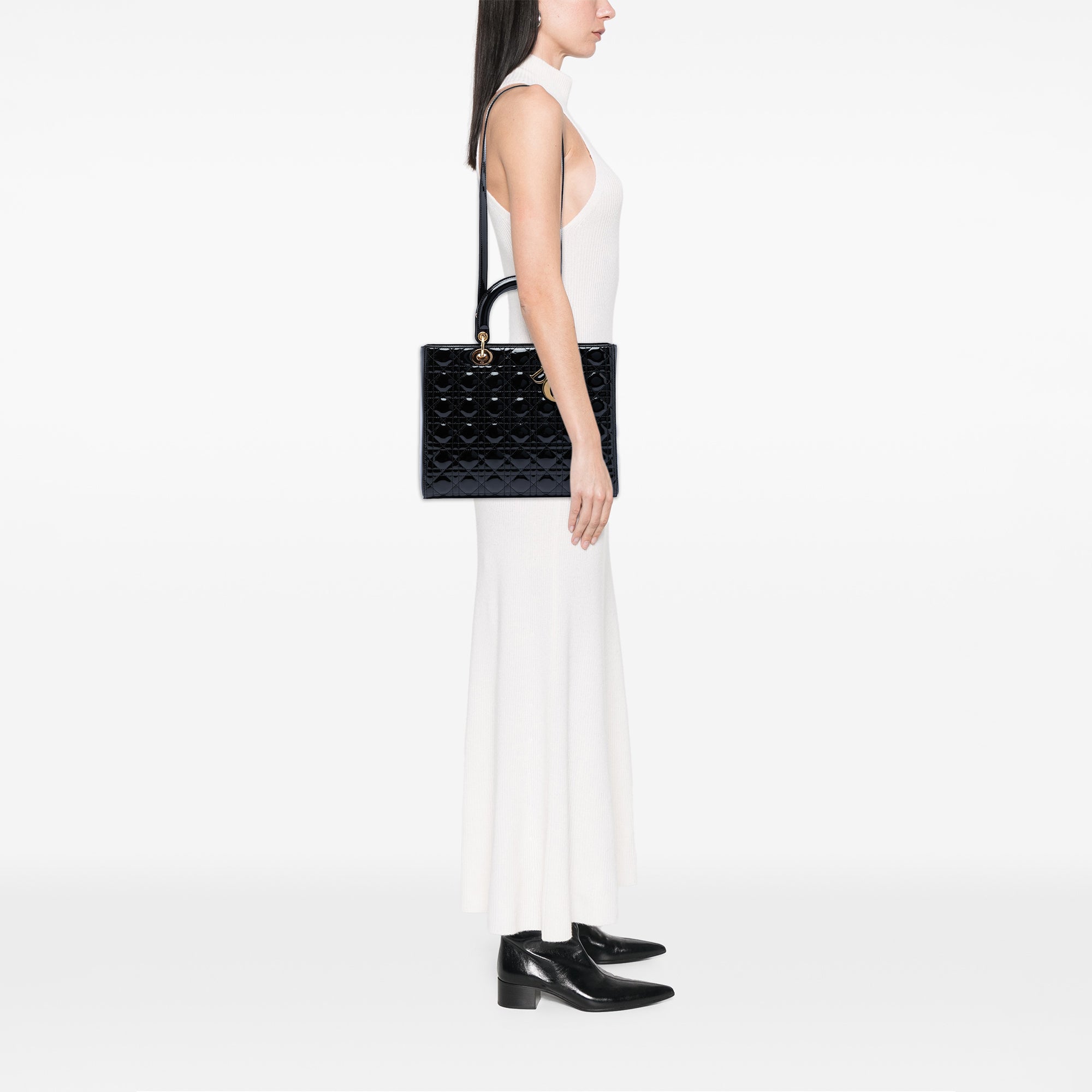 Dior Lady Dior Large Black Patent Leather