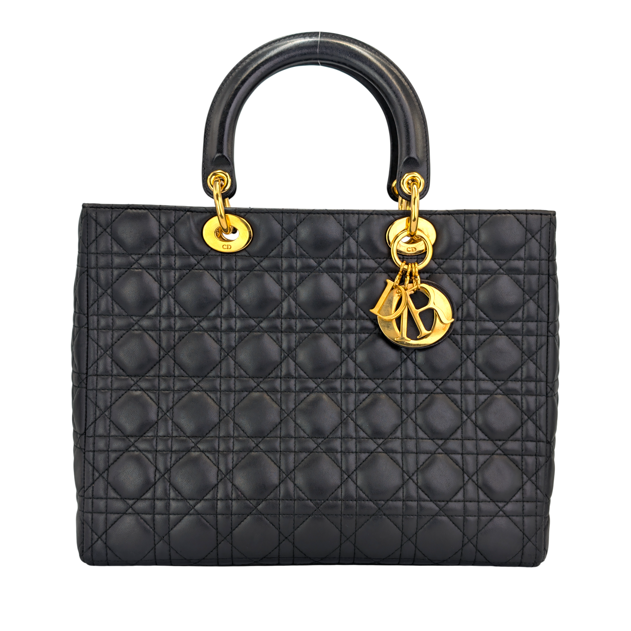 Dior Lady Dior Large Black Cannage Lambskin Gold