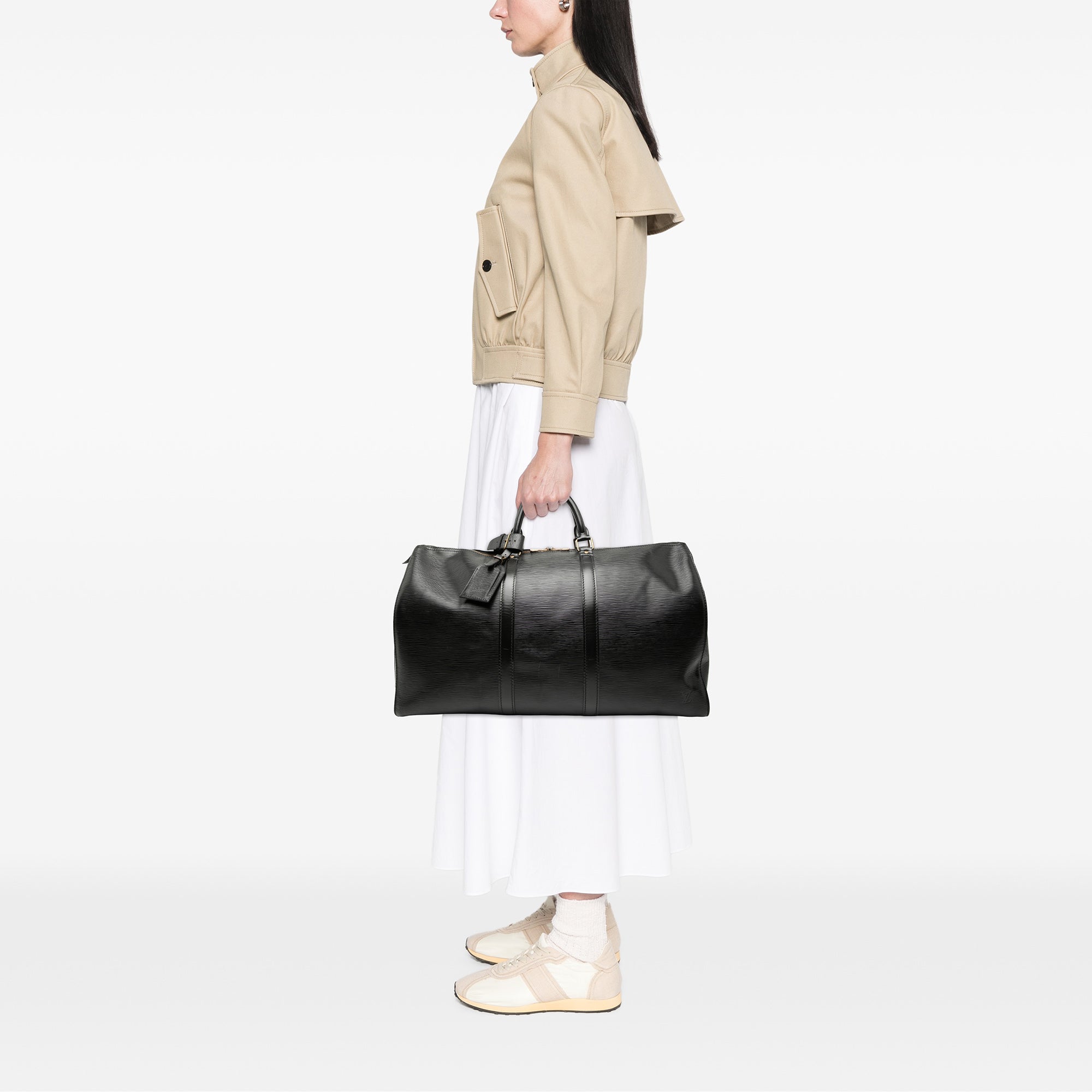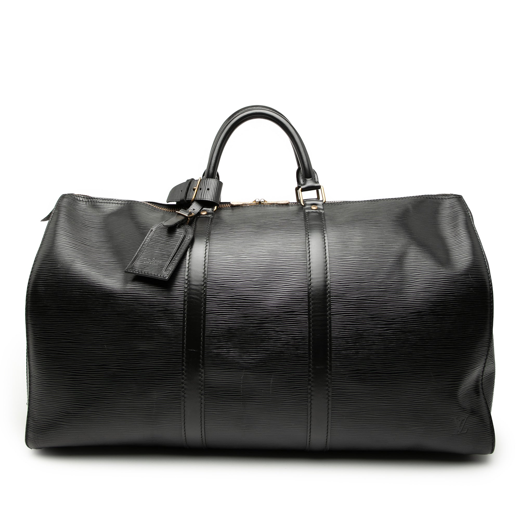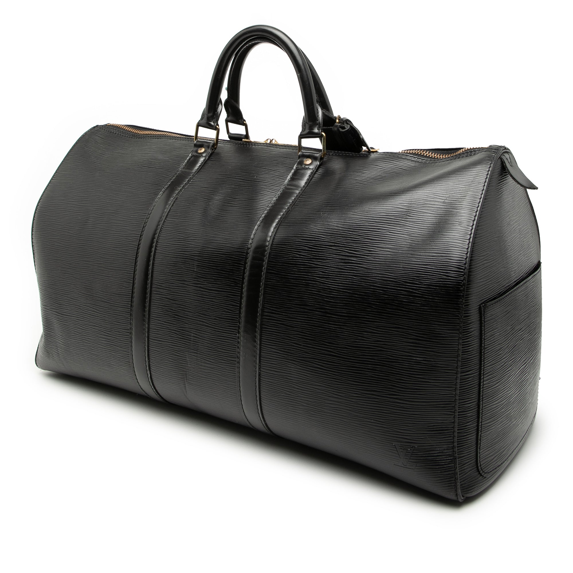 As a weekend bag and carry-on size, the Keepall 50 is suitable for business trips as well as short personal getaways. A side exterior pocket in a slip-pocket style offers quick access to documents or smaller essentials. The combination of Epi leather, precise craftsmanship, and functional details makes this model a subtly luxurious choice for everyday travel.