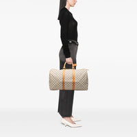 The Louis Vuitton Keepall 50 is a true classic in the Louis Vuitton travel bag collection. It is crafted from the popular checkerboard-patterned Damier Azur canvas and features a double gold-tone brass zipper. A great companion for a weekend getaway.