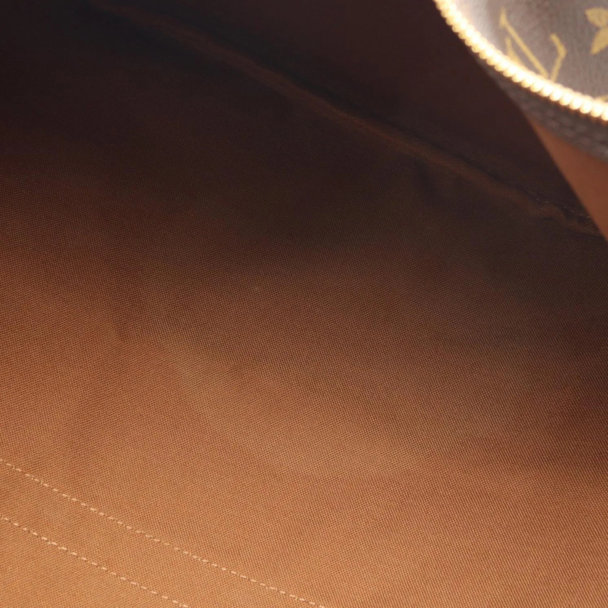 Condition: The Bag Shows slight signs of wear. There are slight water stains and subtle discoloration visible on the sides, handles, and straps. The sides, handles, straps, and corners also show slight wear. There are a few small stains on the lining. The hardware has fine scratches.