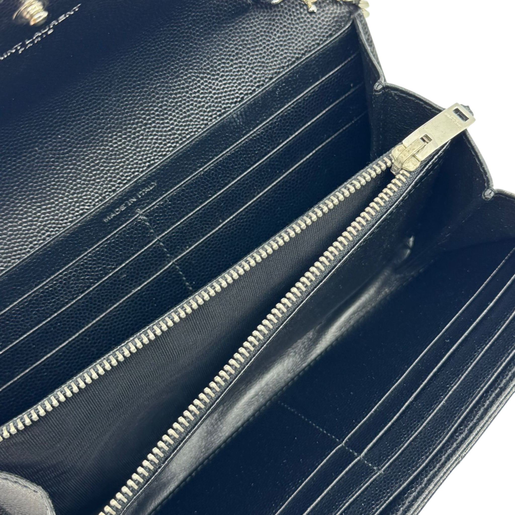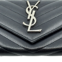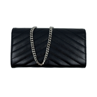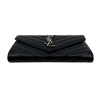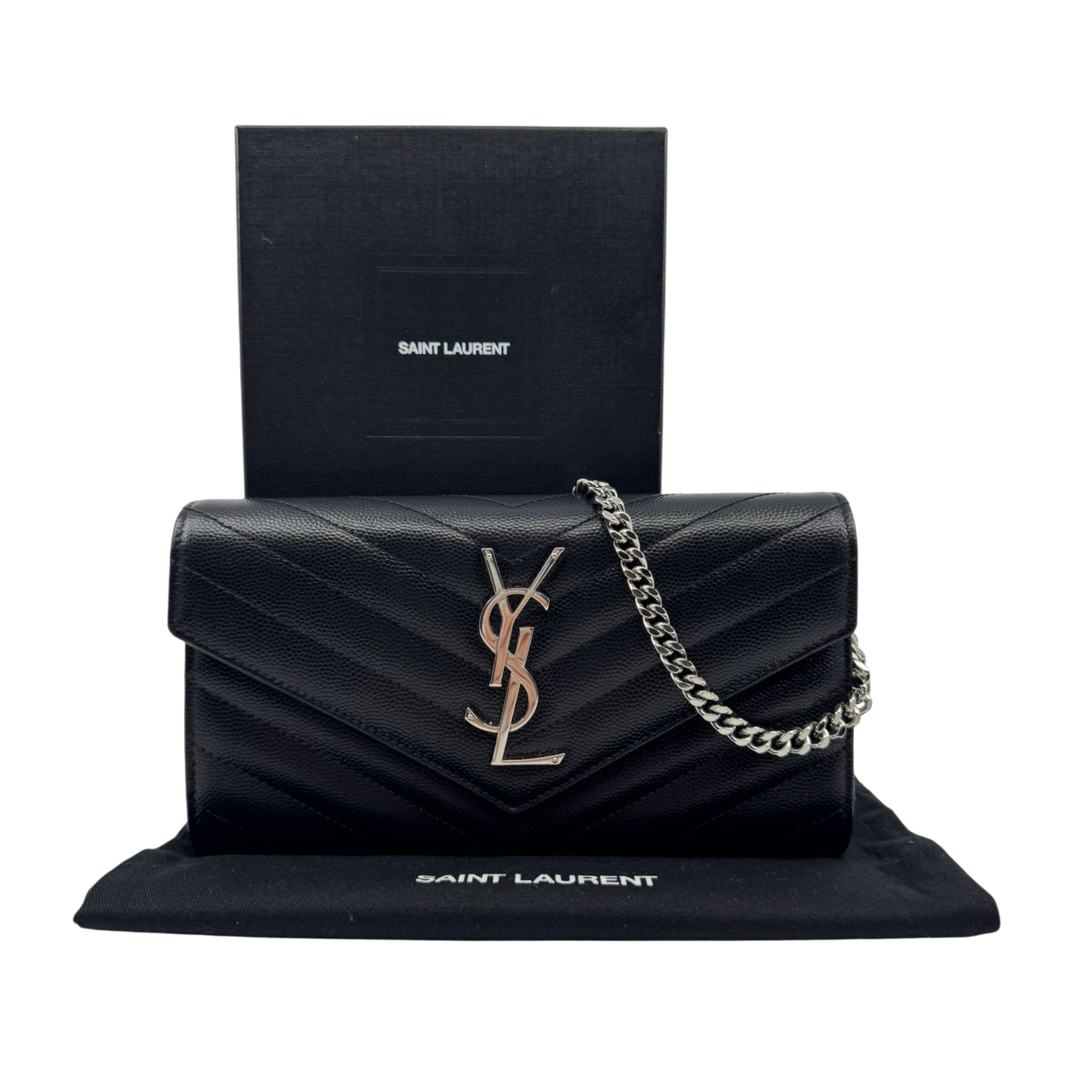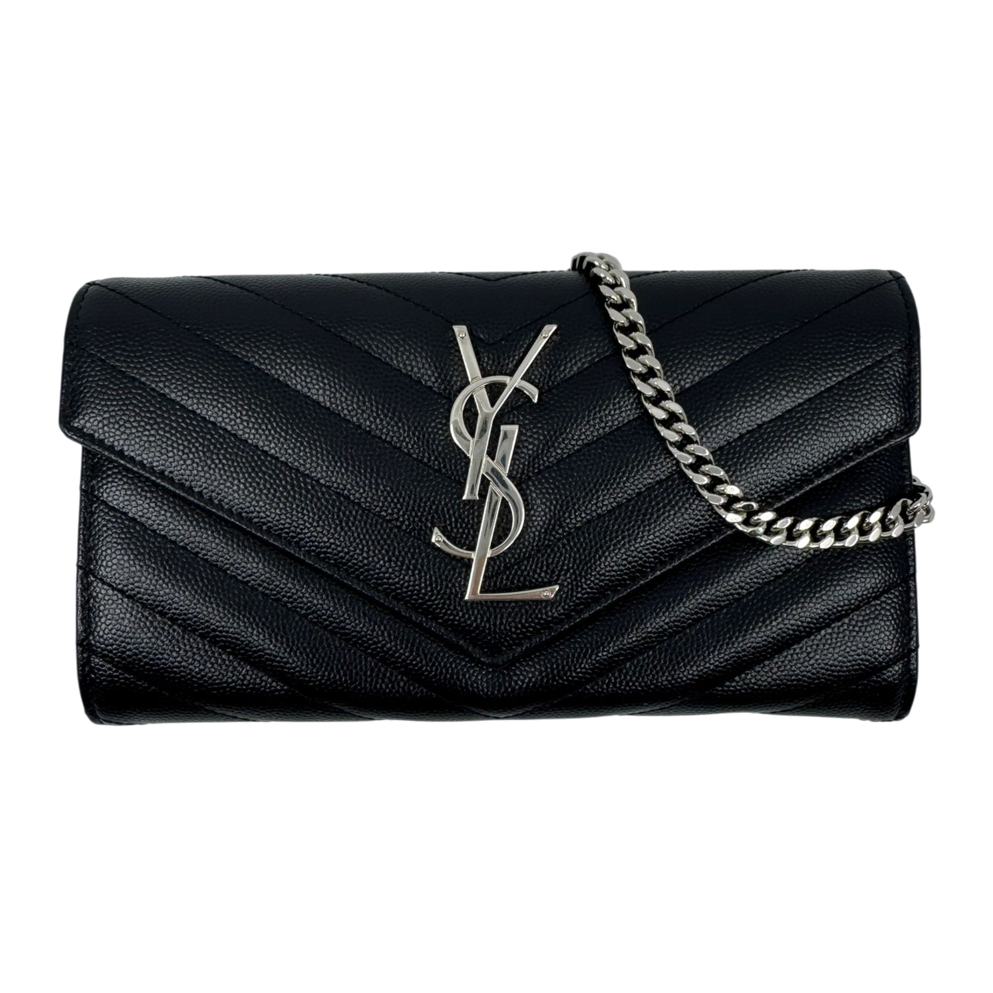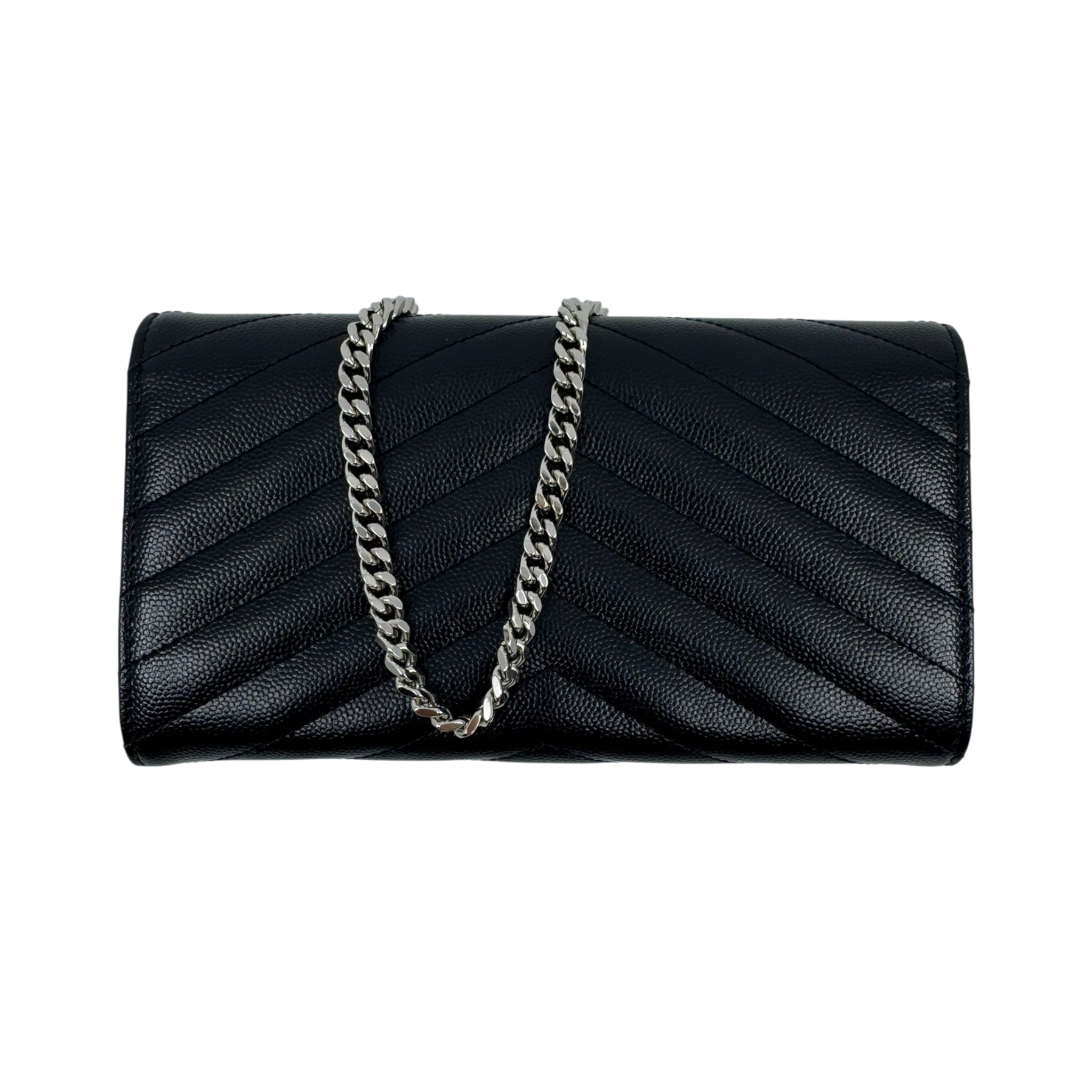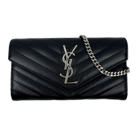 Saint Laurent Cassandra Chain Wallet (WOC) Black Leather Silver