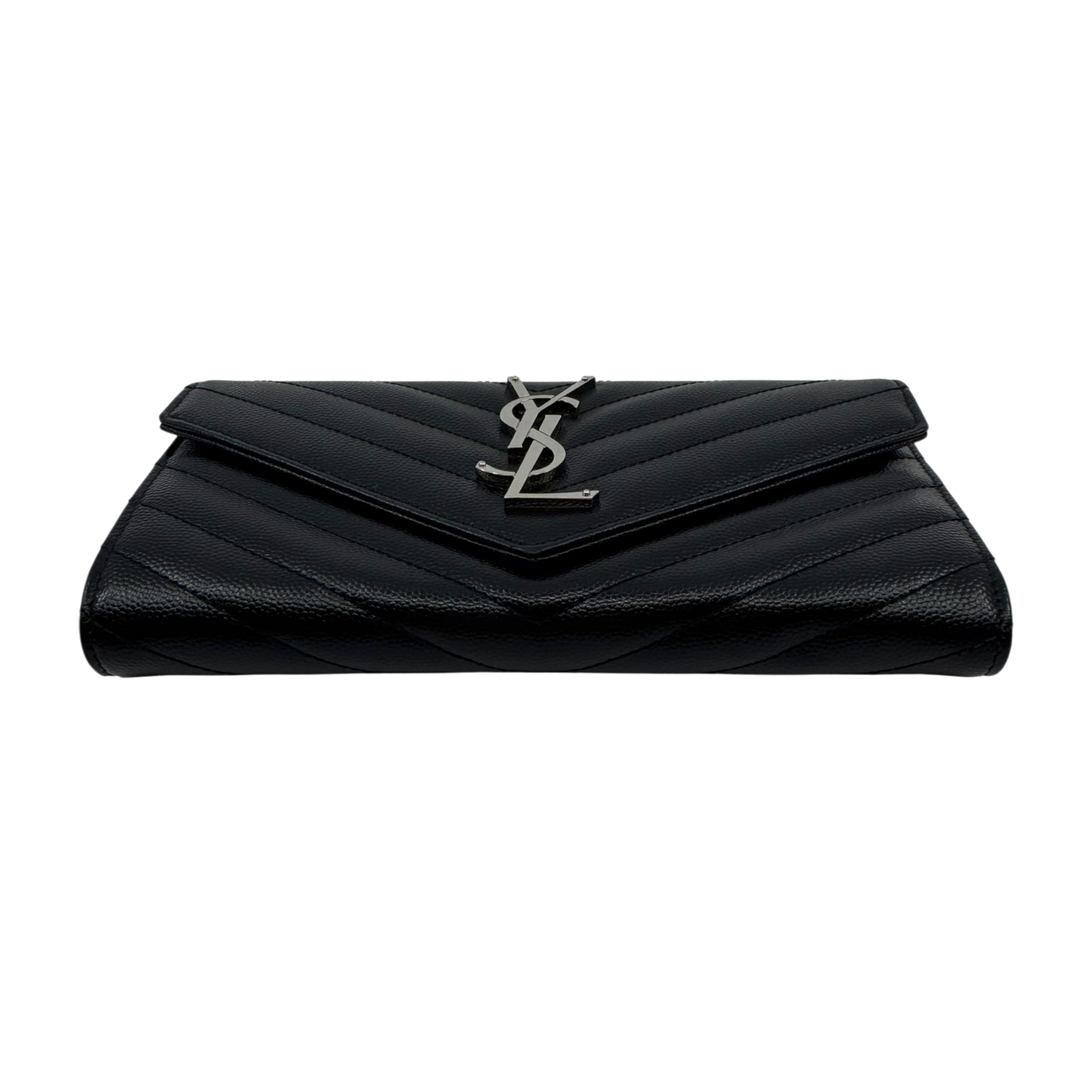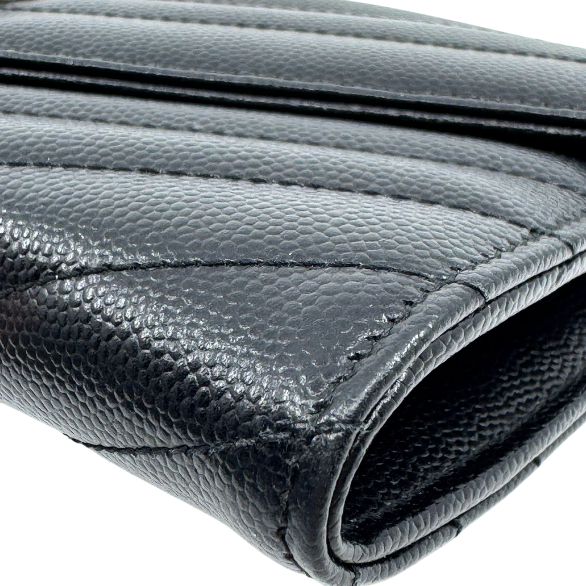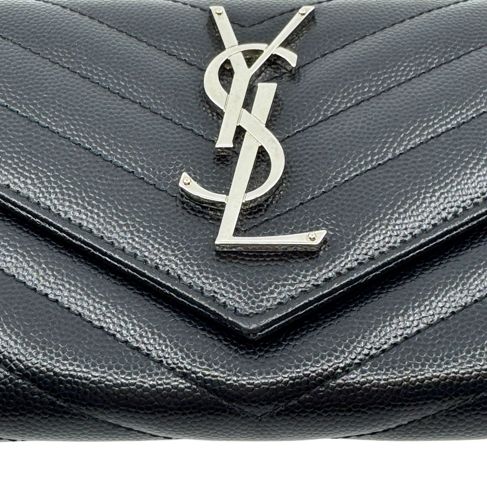 Saint Laurent Cassandra Chain Wallet (WOC) Black Leather Silver