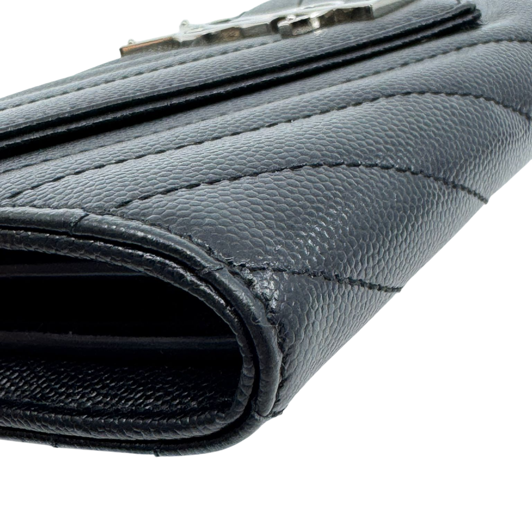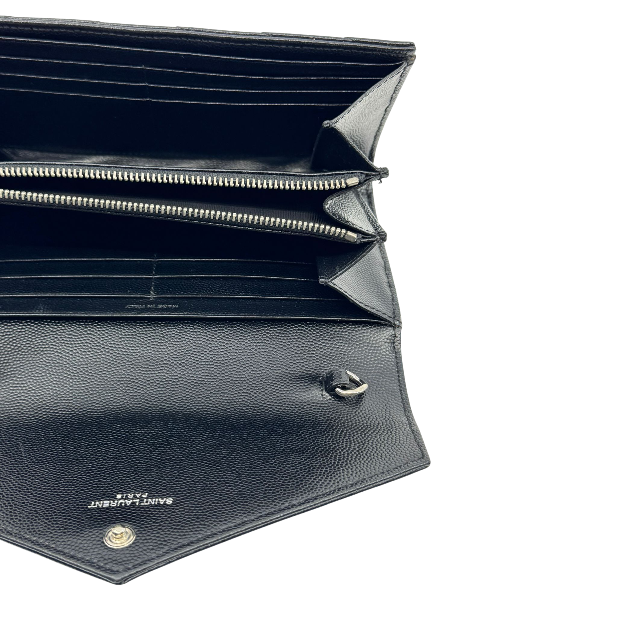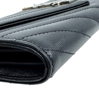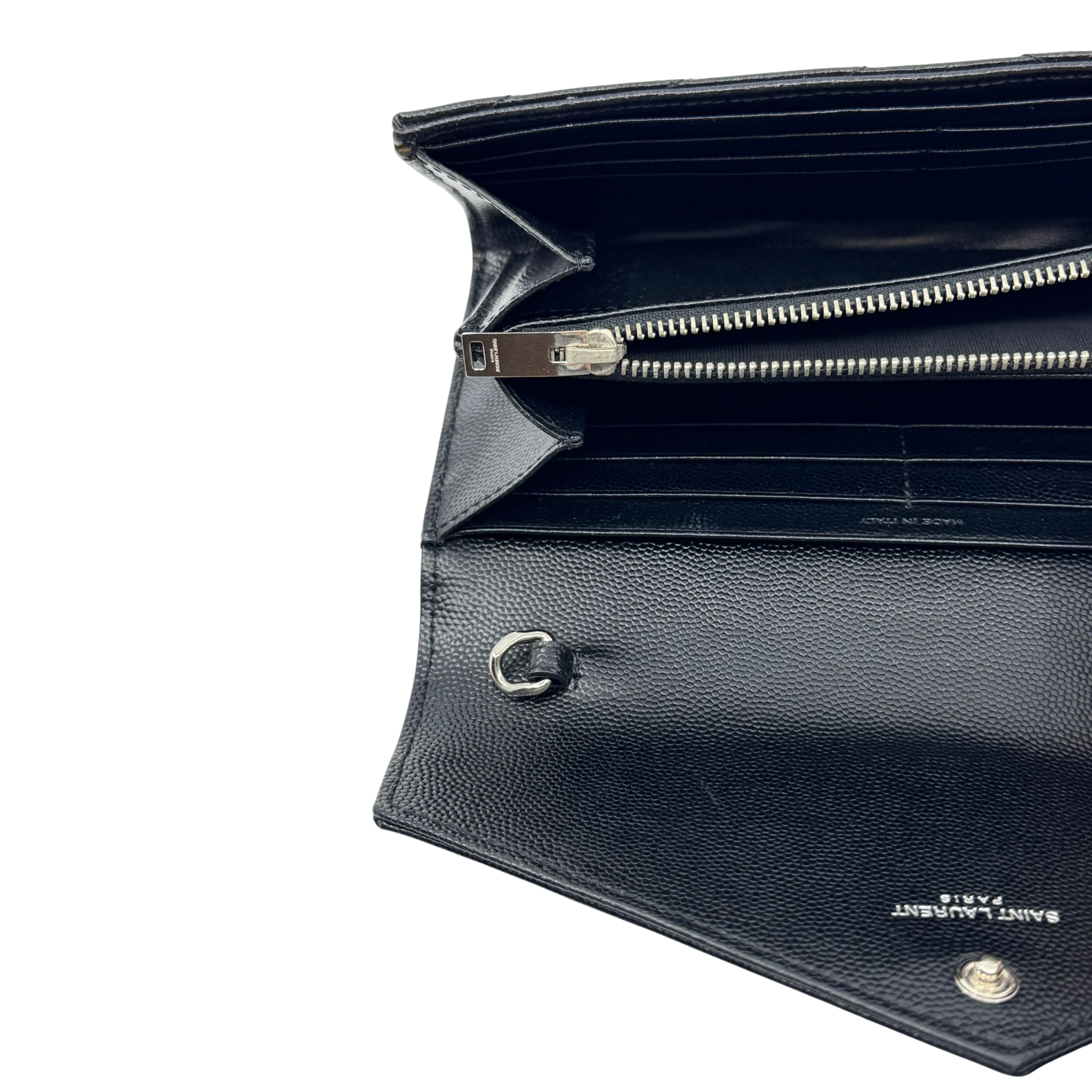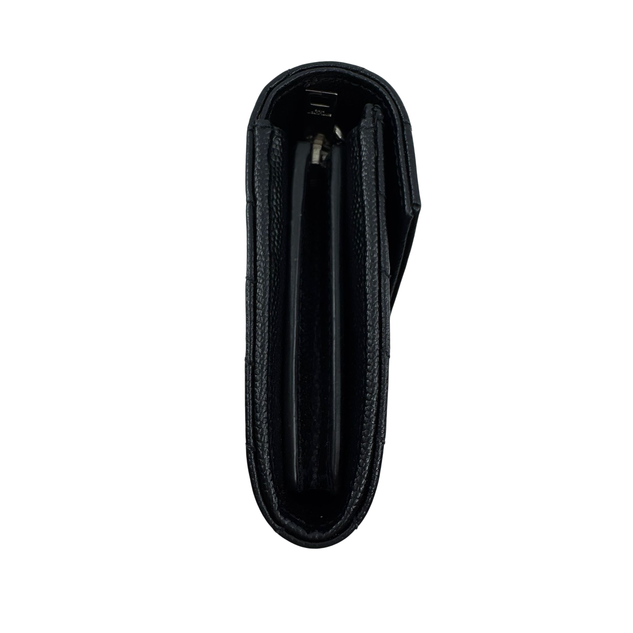 Saint Laurent Cassandra Chain Wallet (WOC) Black Leather Silver