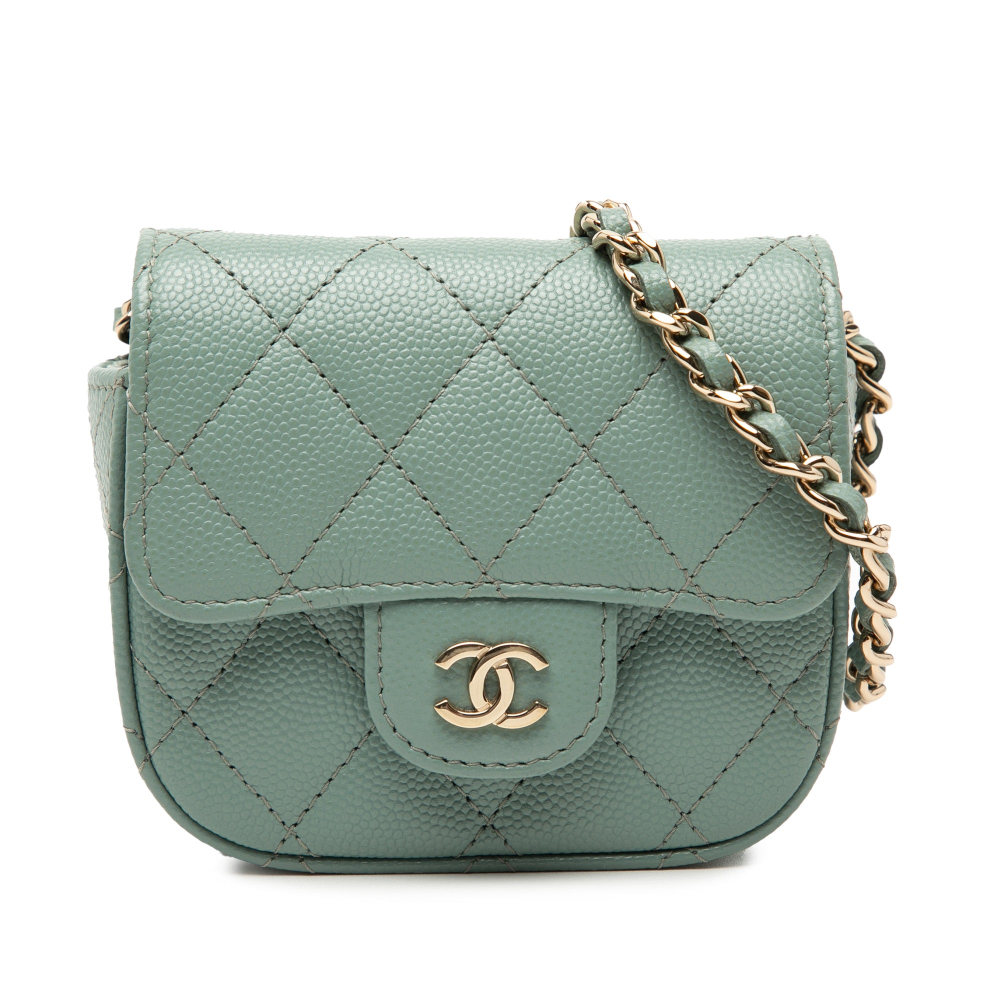 Chanel Classic Single Flap Micro Green Caviar Gold