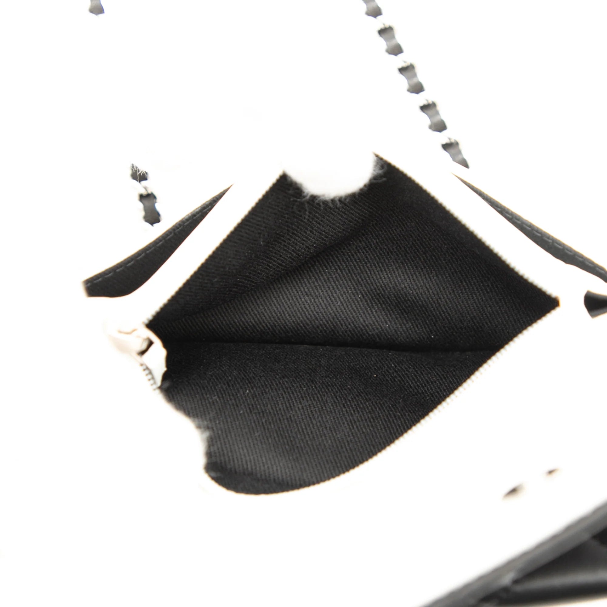 This enchanting one Chanel Wallet on Chain out bicolor lambskin in Black and white combines timeless elegance with practical versatility. The compact design offers enough space for cards and banknotes while the silver chain the Bag Can be worn either as a shoulder or crossbody bag. The double-sided flap provides playful sophistication and effortless access. The Hardware is made of shiny silver and shows minimal signs of wear.