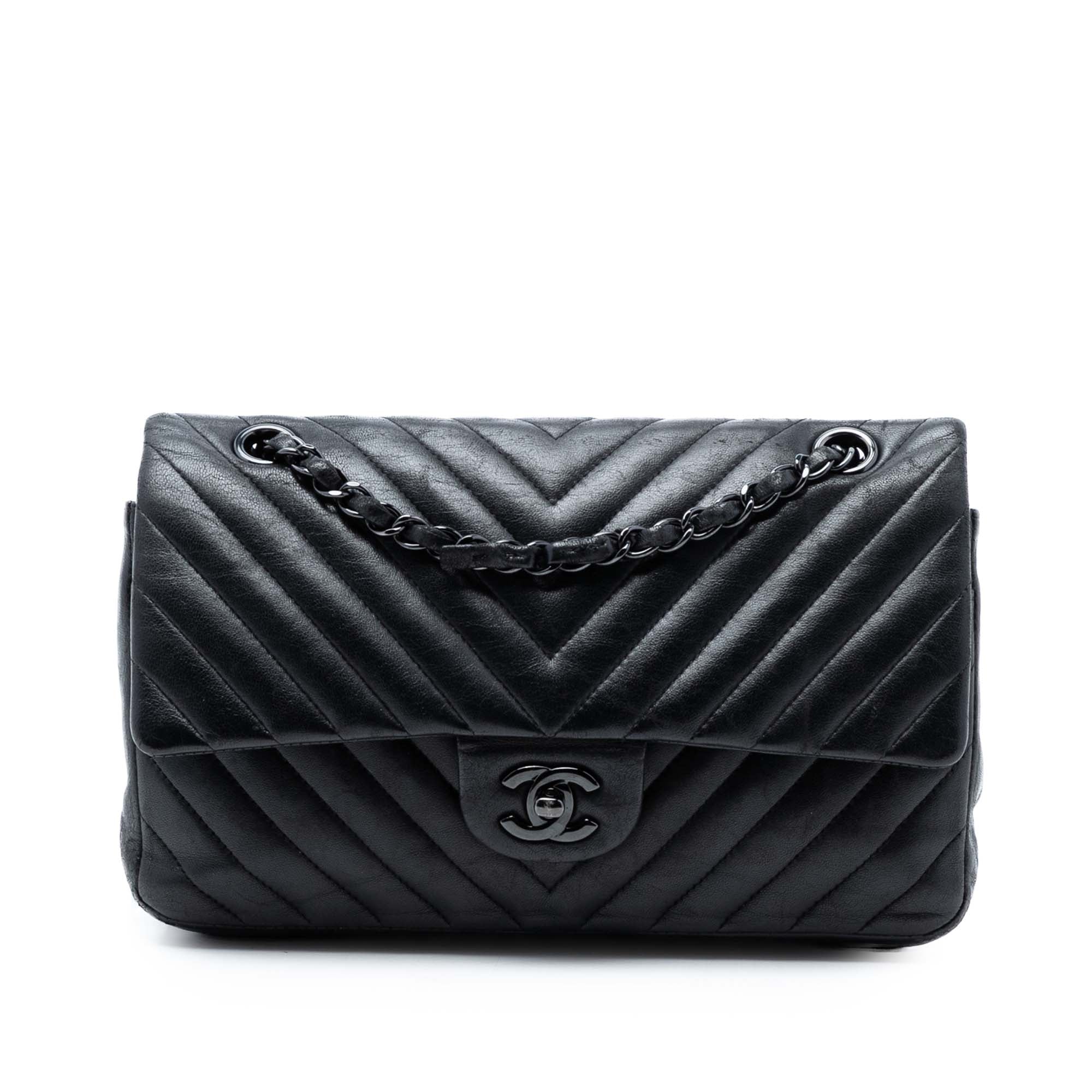 Chanel Classic Double Flap Medium Black Chevron Lambskin So Black