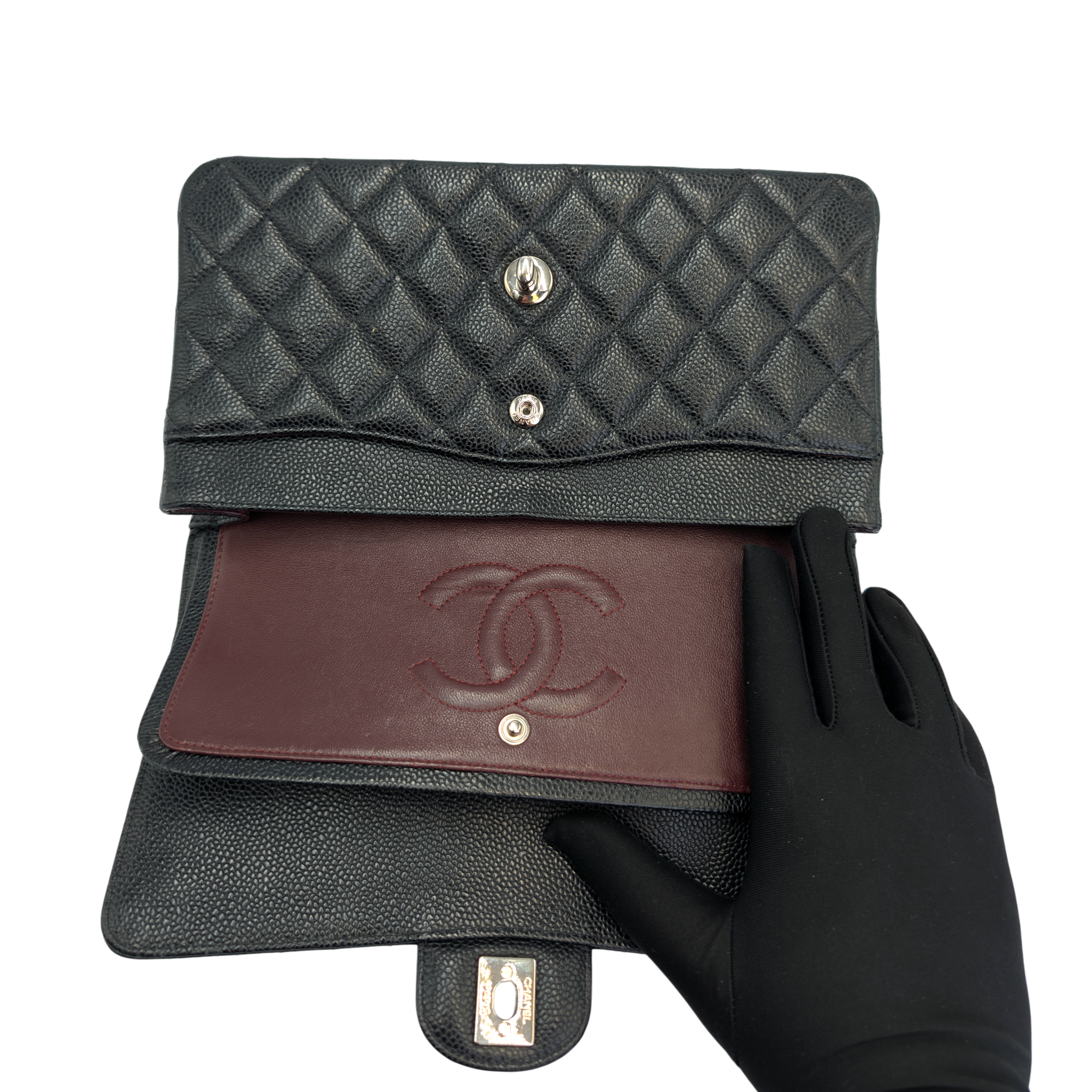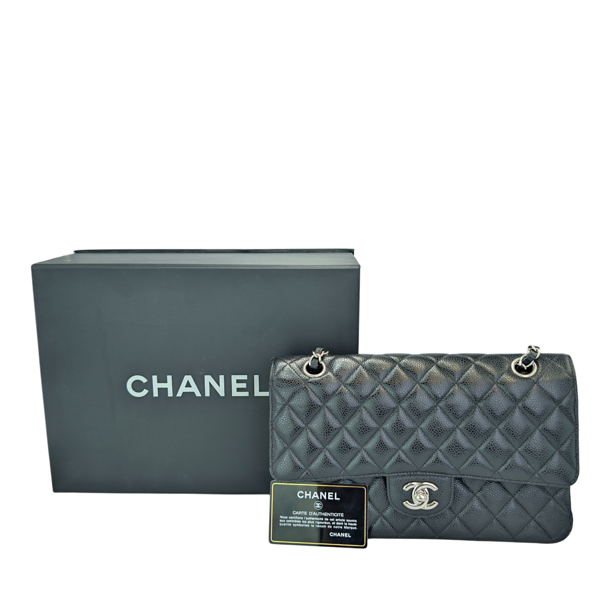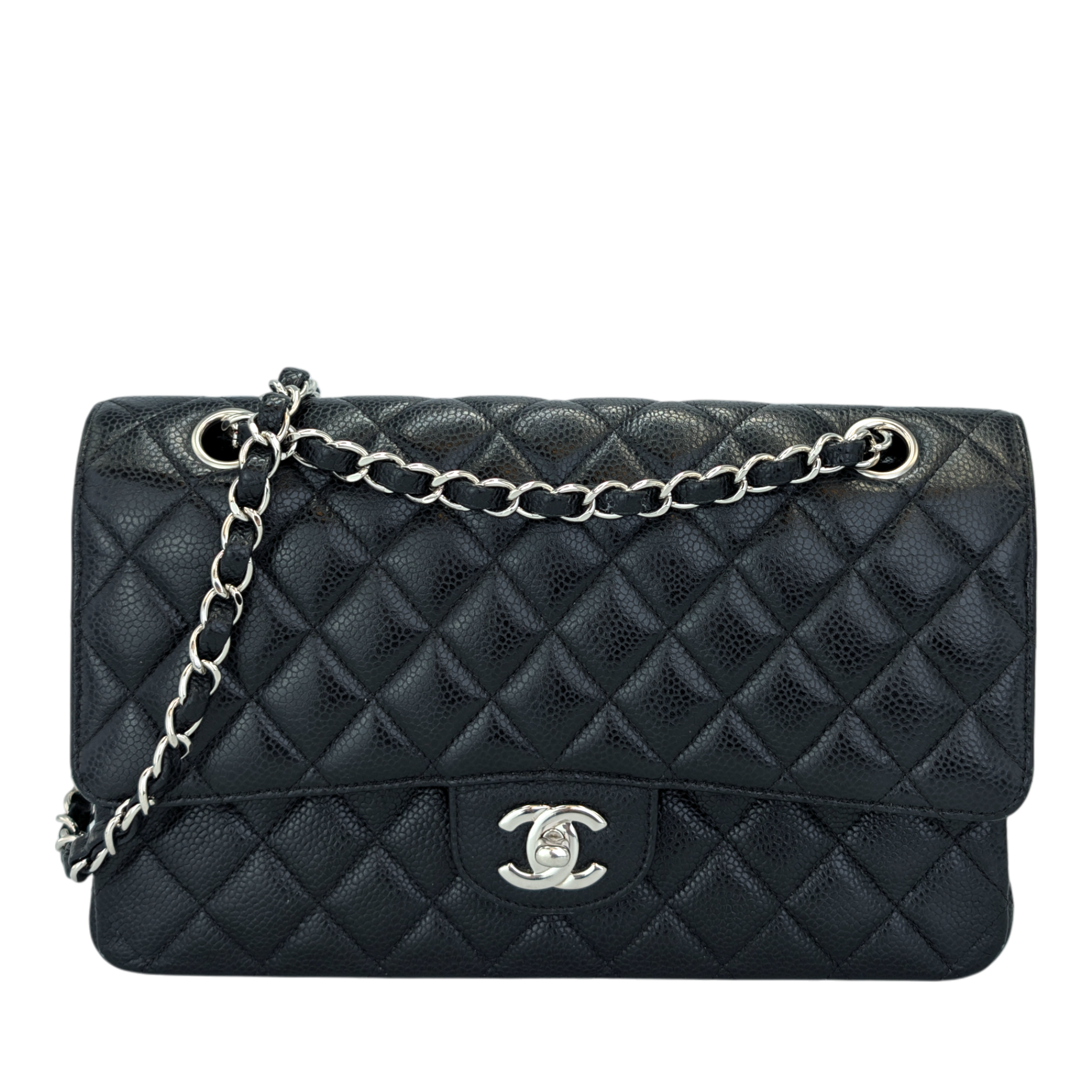 Chanel Classic Double Flap Medium Black Caviar Silver