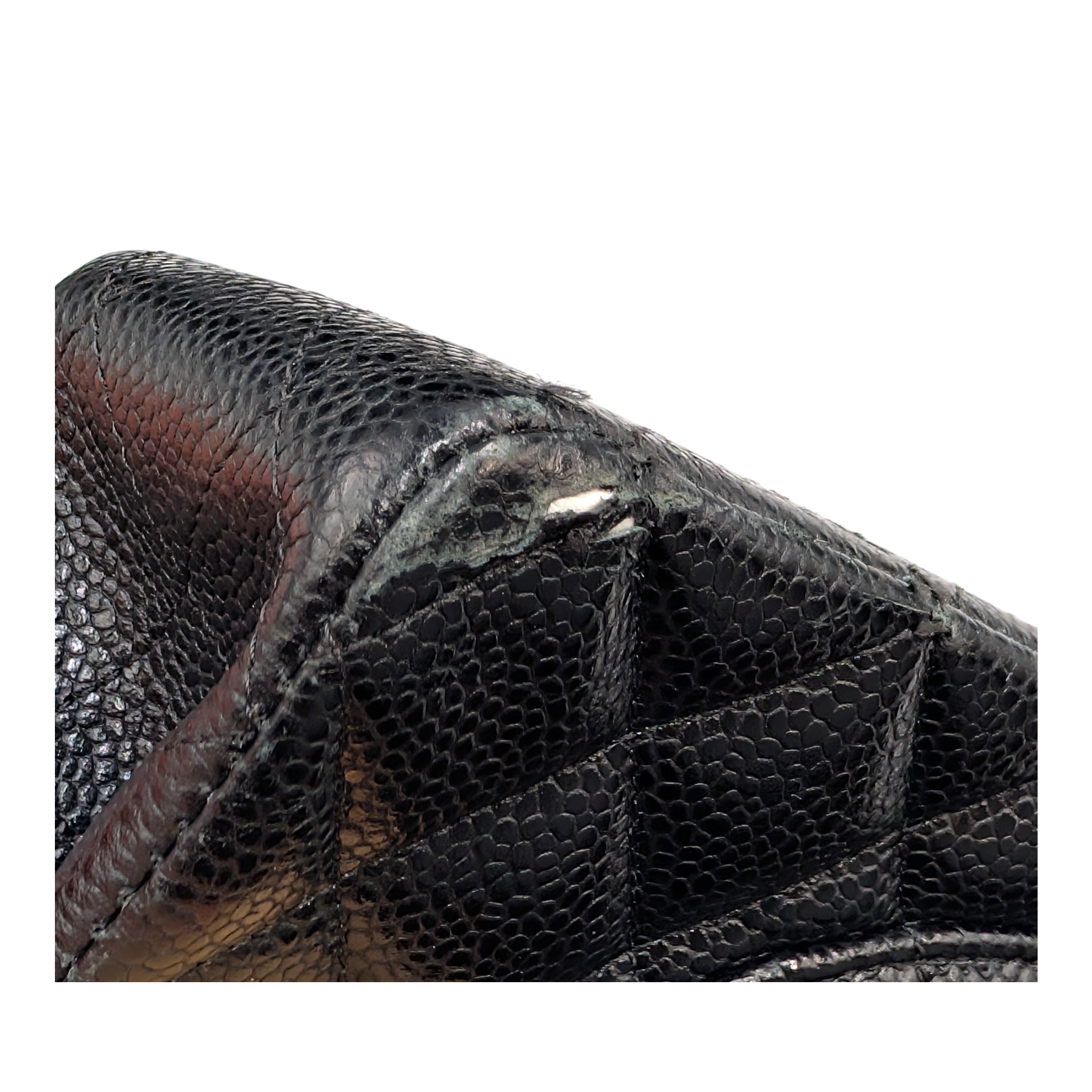 The handles show signs of wear. The hardware has a few fine scratches.
