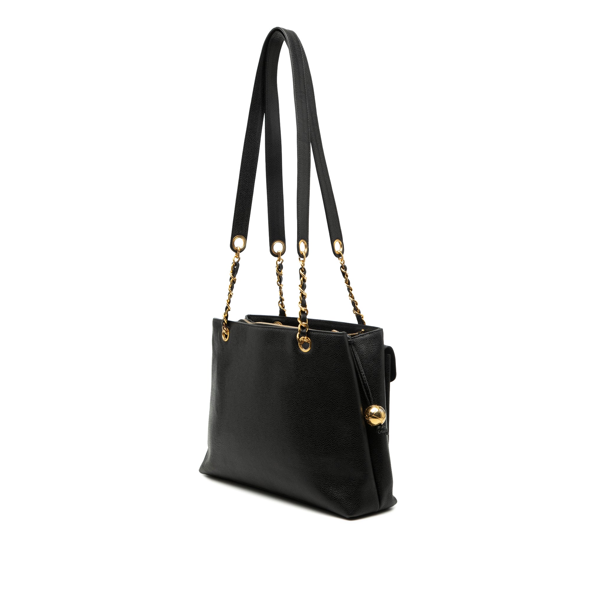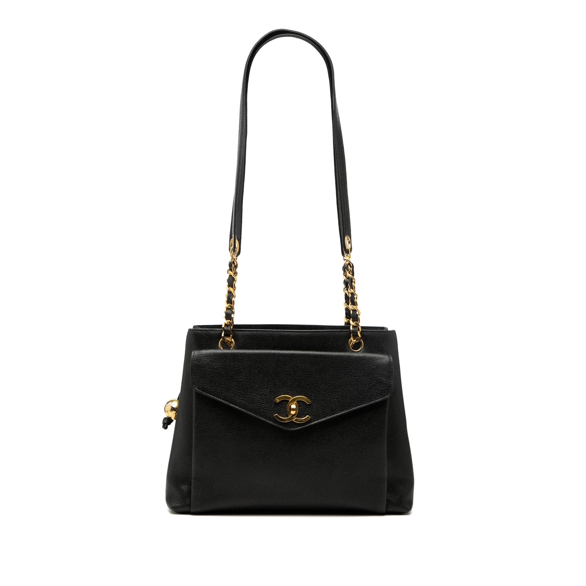 Chanel CC Front Pocket Chain Tote Black Caviar Gold