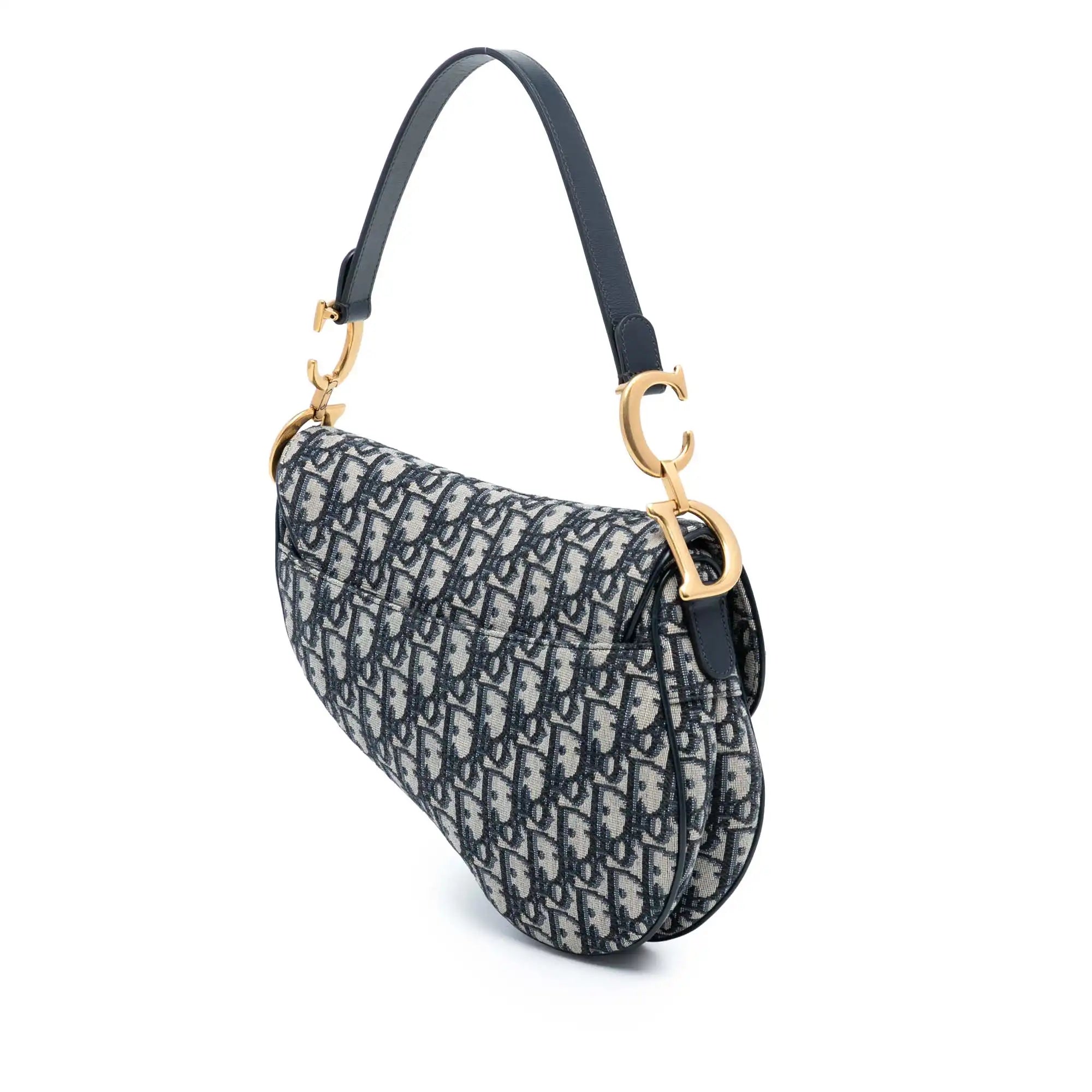 An iconic masterpiece of the Maison Dior, the Dior Saddle Bag in blue Oblique canvas embodies modern luxury with distinctive design. The elegant oblique pattern in blue gives the Bag a timeless recognition value, while the curved silhouette underlines the brand's characteristic saddle look. A stylish companion that will add a touch of sophistication and Parisian chic to any outfit.The Dior Saddle Bag in blue Oblique Jacquard Canvas is an iconic handbag from the French fashion house Dior. Originally introduced in 1999 by John Galliano, it made a remarkable comeback in 2018 under the creative direction of Maria Grazia Chiuri.