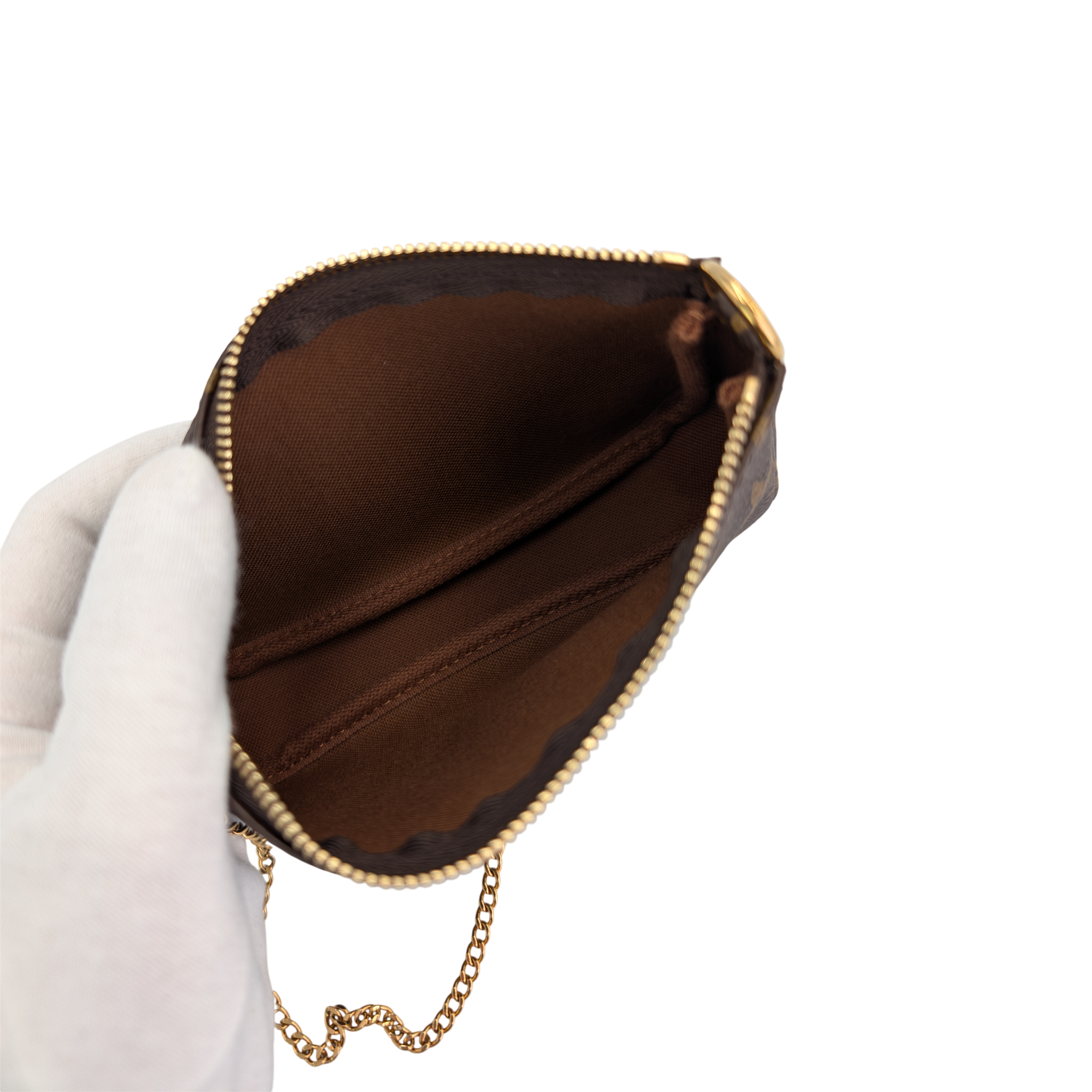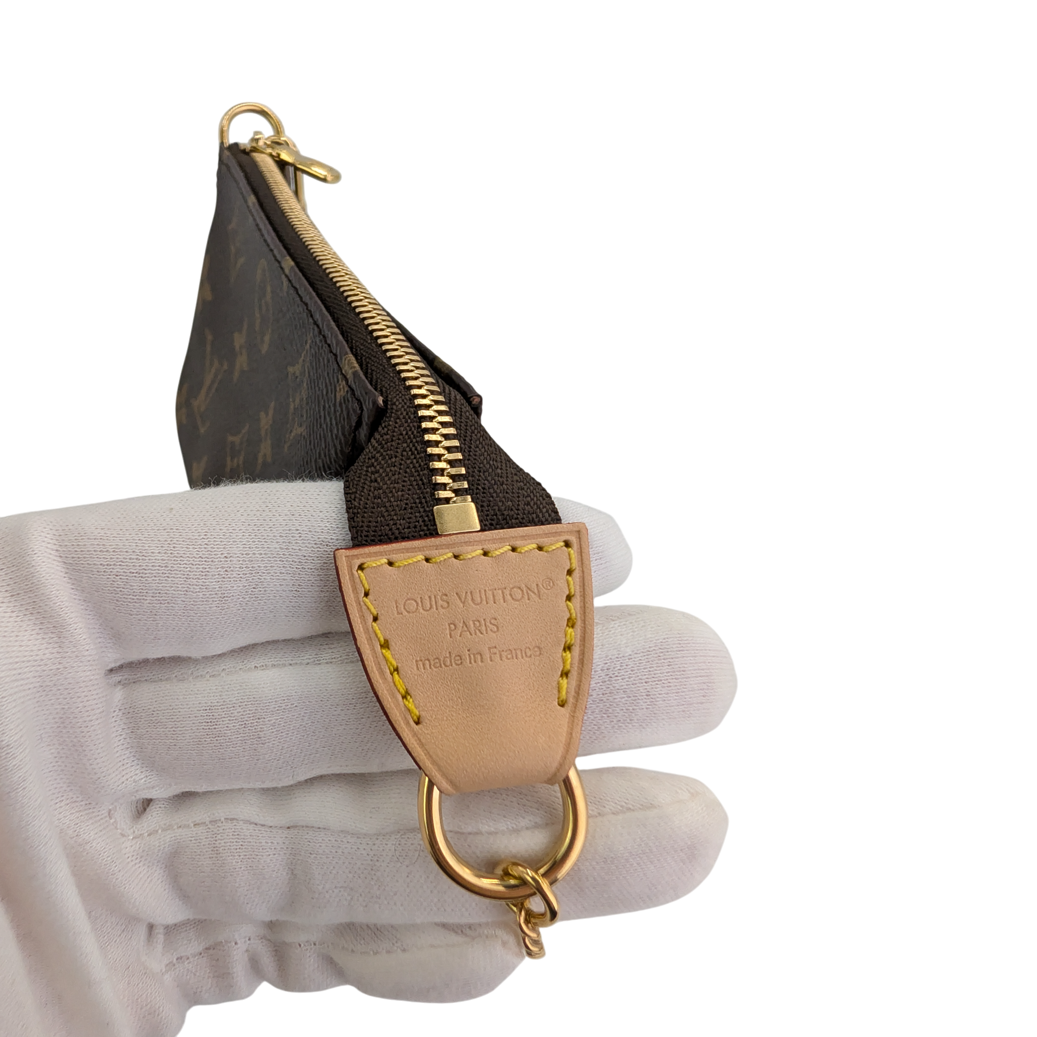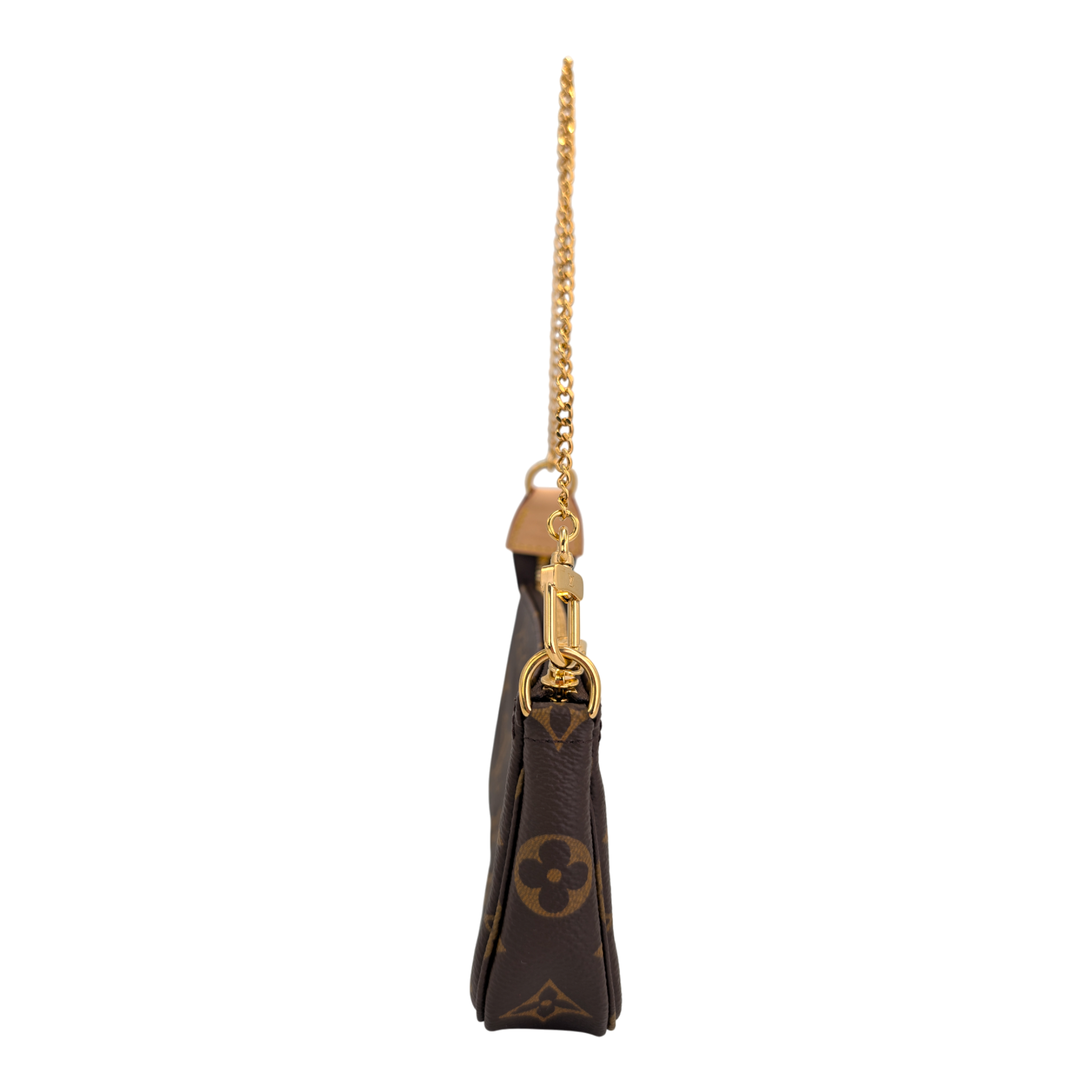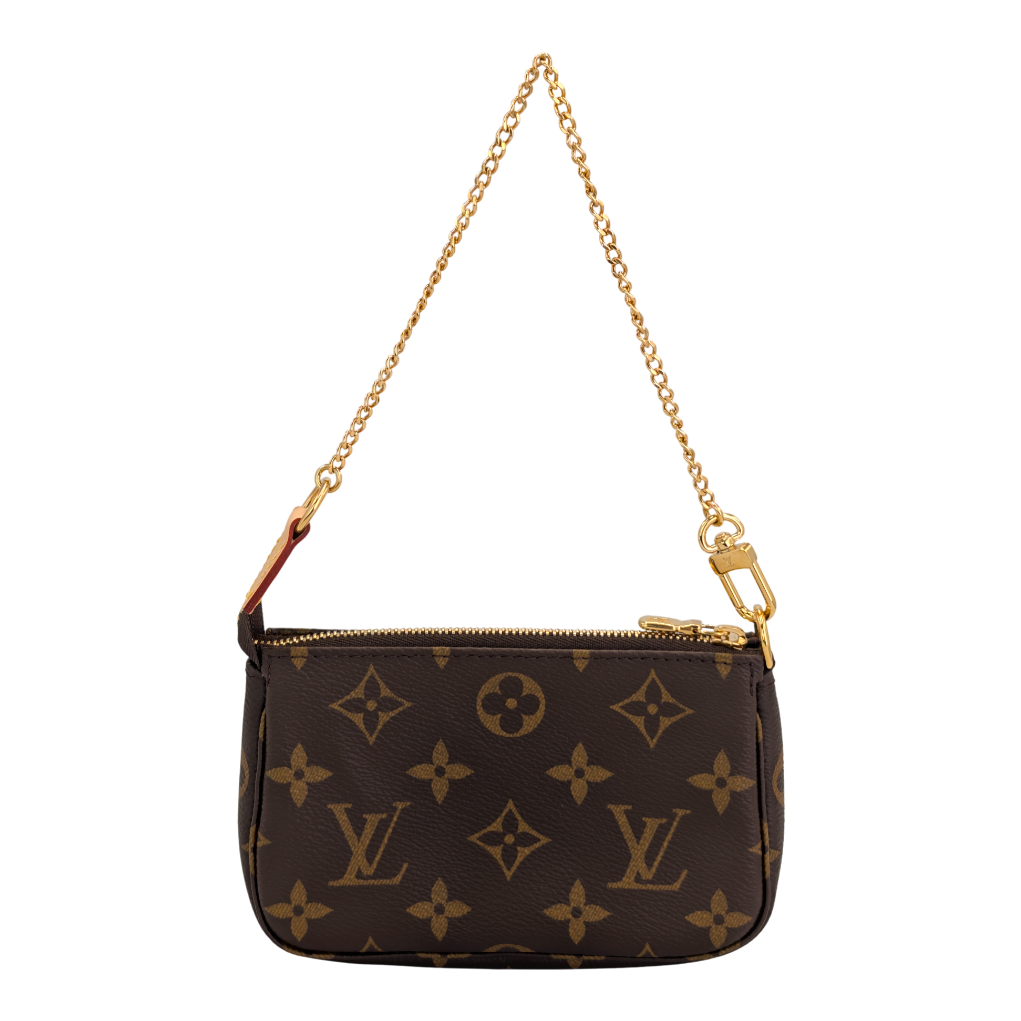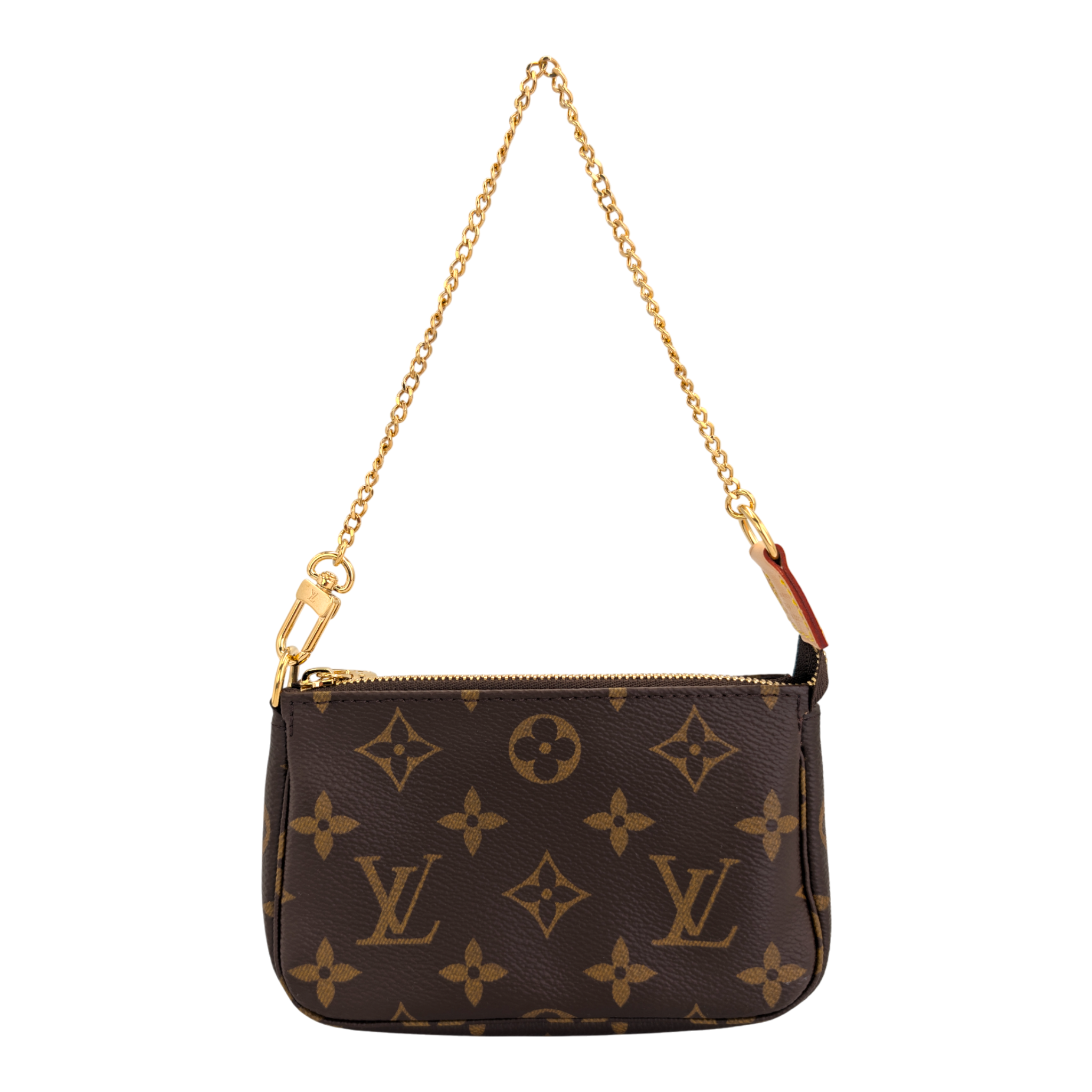 The Mini Pochette Accessories in Monogram Canvas is a stylish way to carry your essentials. Its secure zipper protects a spacious compartment, while the chain and hook allow it to be attached to a larger compartment Bag to attach or carry in your hand. The rounded shape and the soft canvas give this Bag that certain something.
