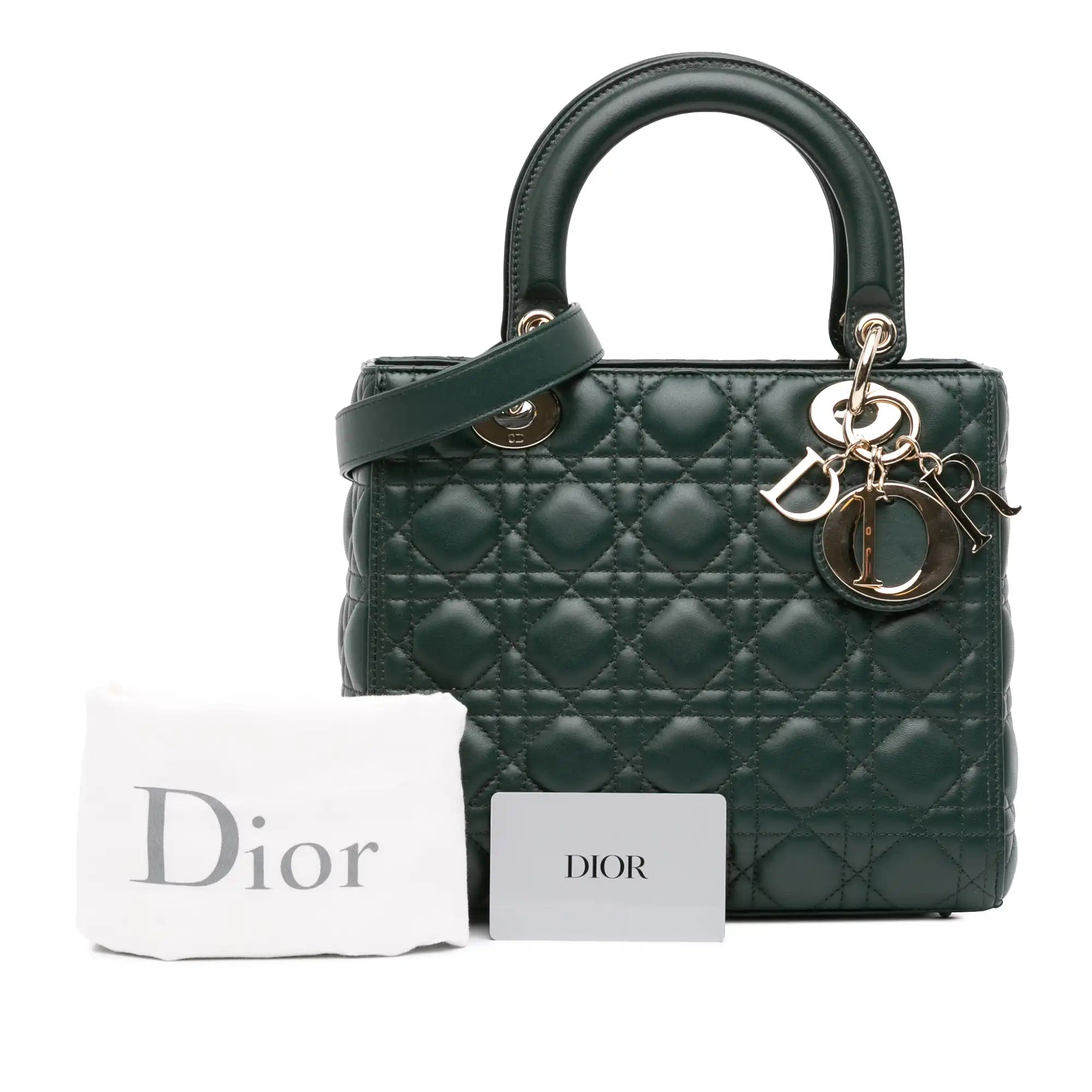 Dior Lady Dior Medium Dark Green Lambskin Gold