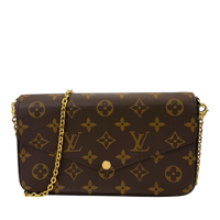 The Louis Vuitton Pochette Félicie in the iconic Monogram Canvas is one of the Maison’s most coveted styles, combining elegance with functionality. Its sleek, timeless silhouette makes it a versatile companion—whether as a stylish clutch for the evening or, with the removable gold-tone chain, as a lightweight crossbody bag for everyday use. The classic Monogram pattern, combined with the refined hardware, gives the model a luxurious yet understated character.