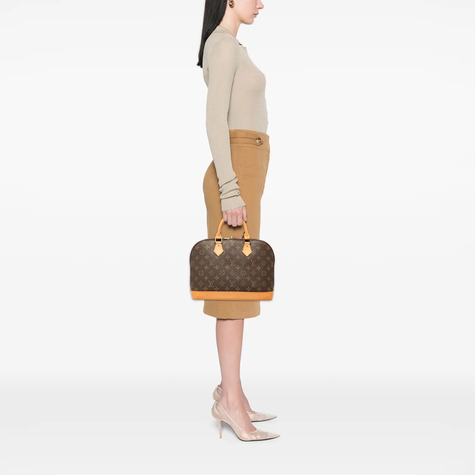 The Alma model was first launched in 1934 and is one of the fashion house's classics. This elegant model in the popular Monogram canvas has hand-stitched handles, dark brown cowhide leather trim and gold-colored hardware. It can be carried either in the hand or on the elbow.