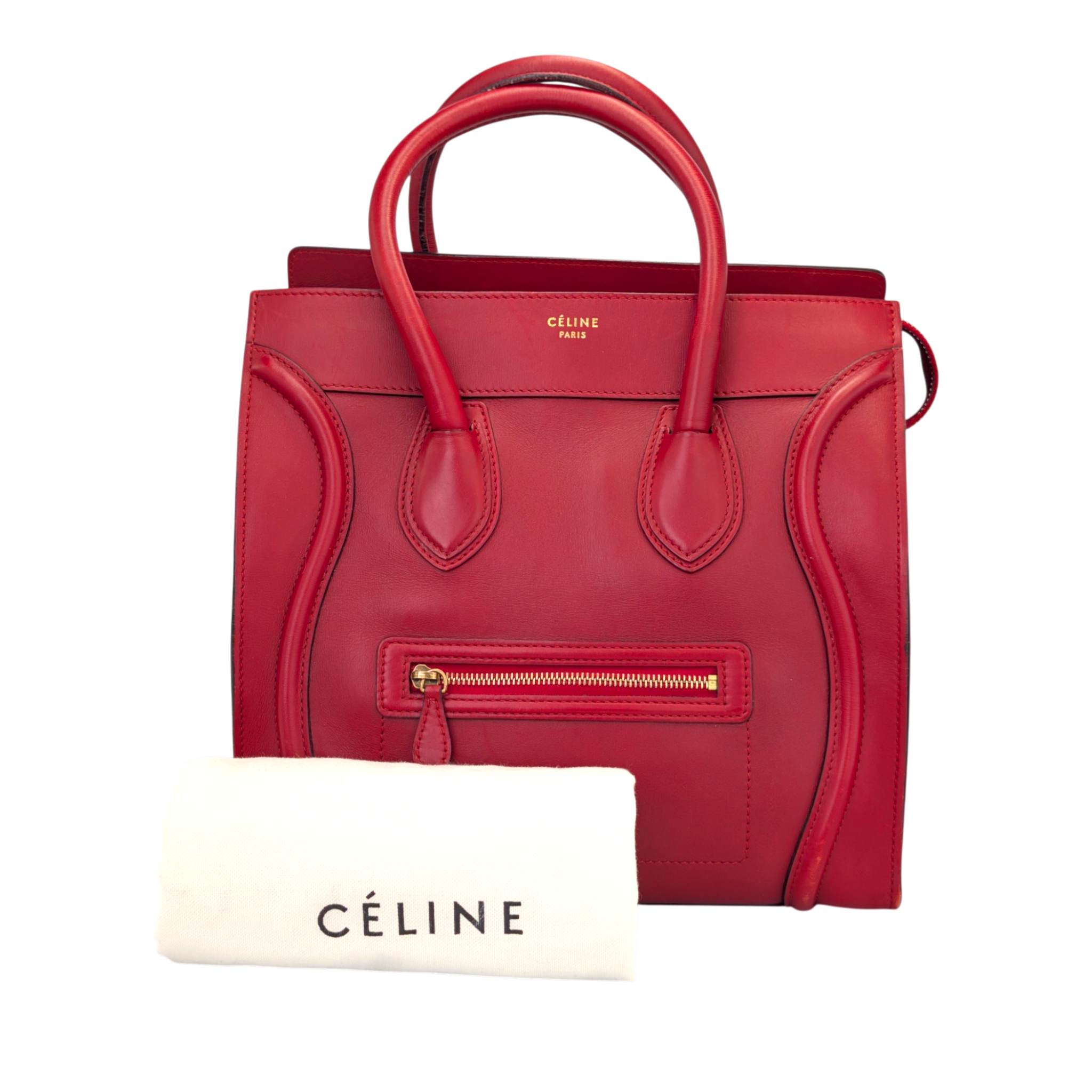 Céline Luggage Mini Red Calfskin