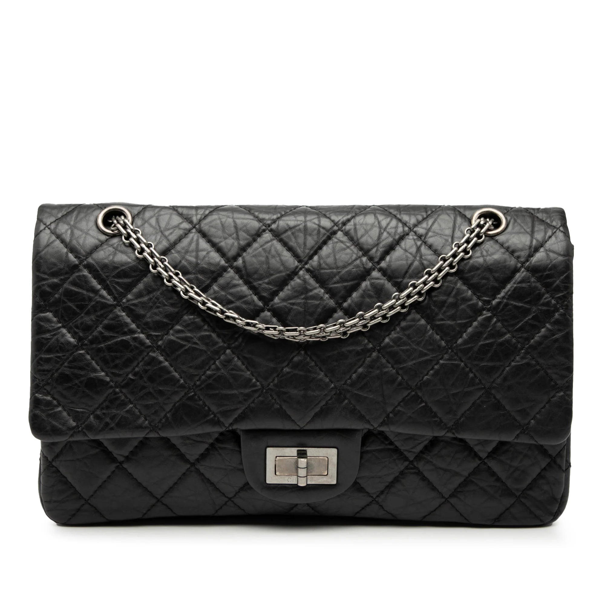 Chanel 2.55 Reissue Double Flap 227 Black Aged Calfskin Silver