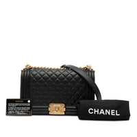 Chanel Boy Bag Old Medium Black Lambskin Gold