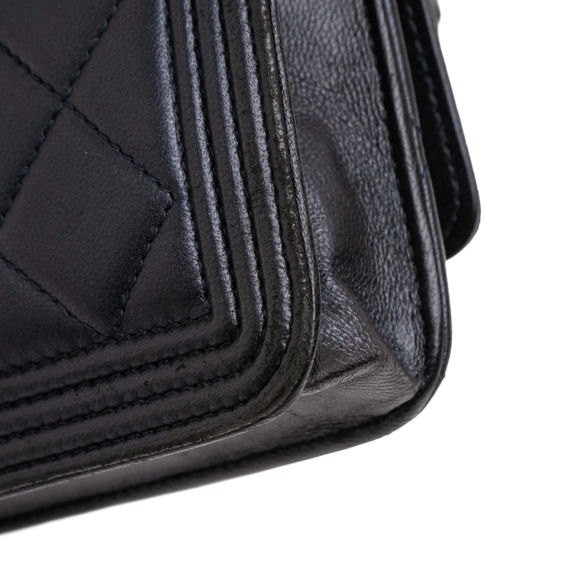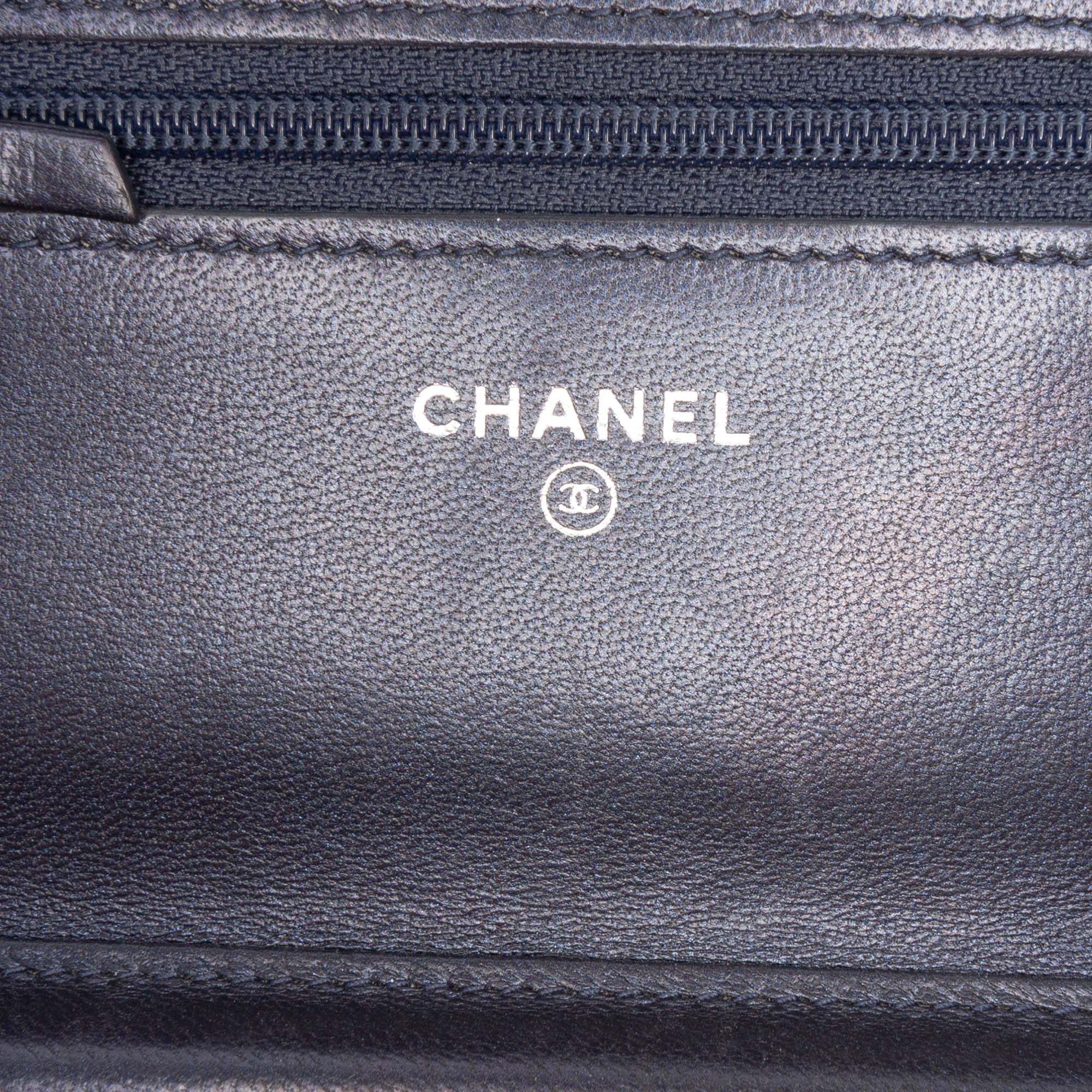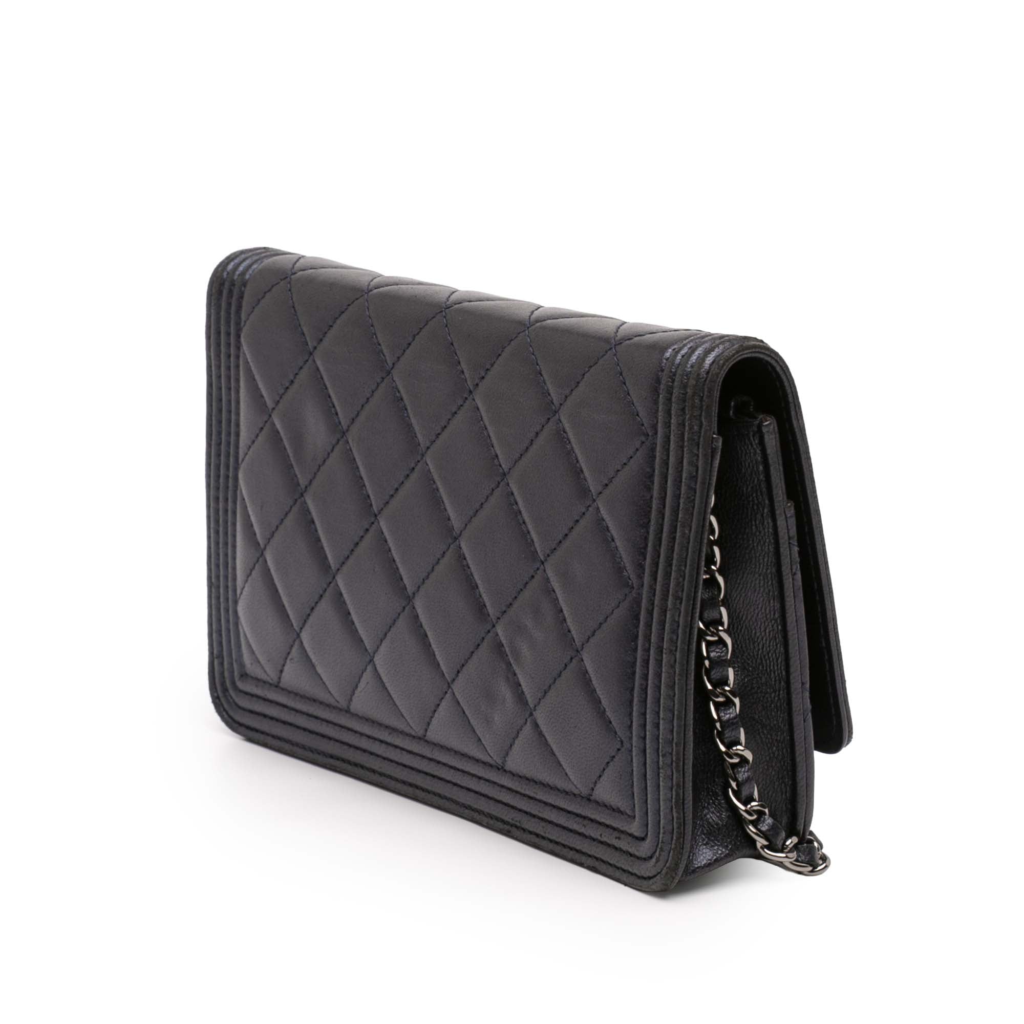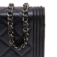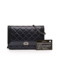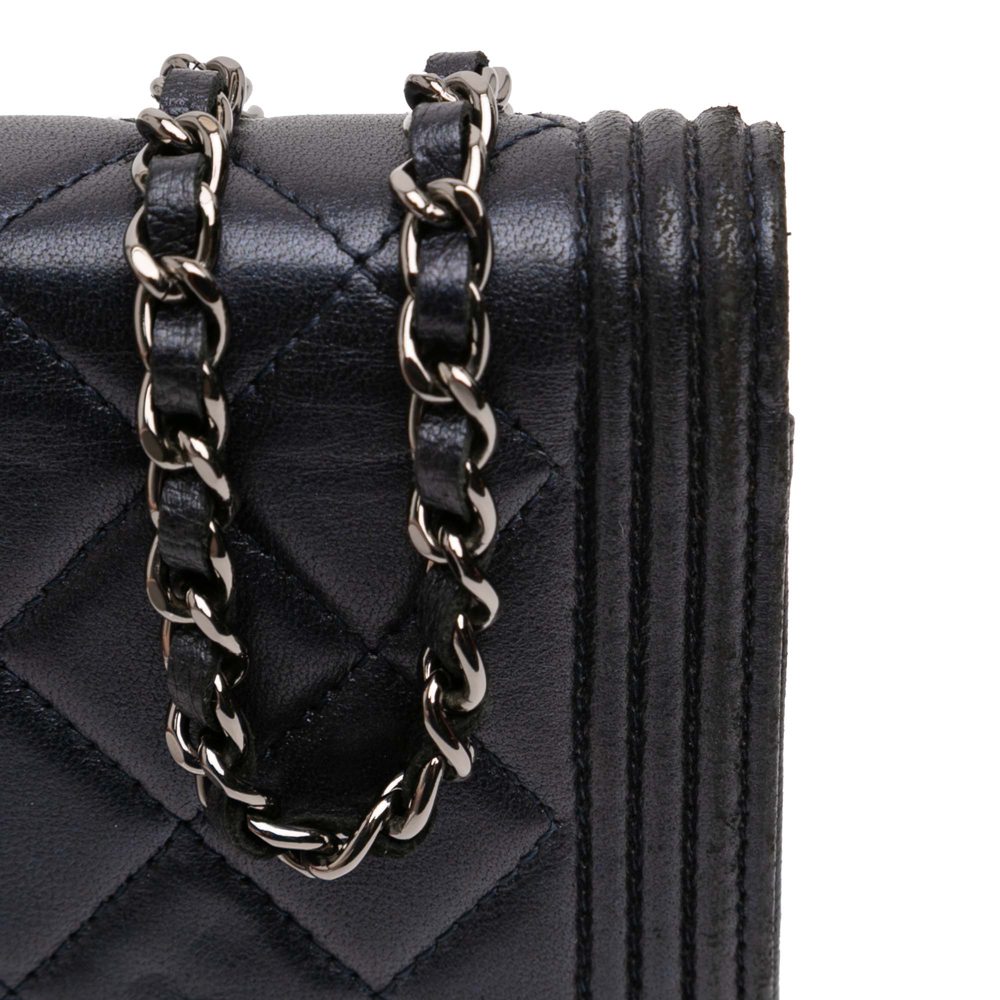 Chanel Boy Wallet on Chain in Blue Lambskin with Ruthenium Finish