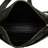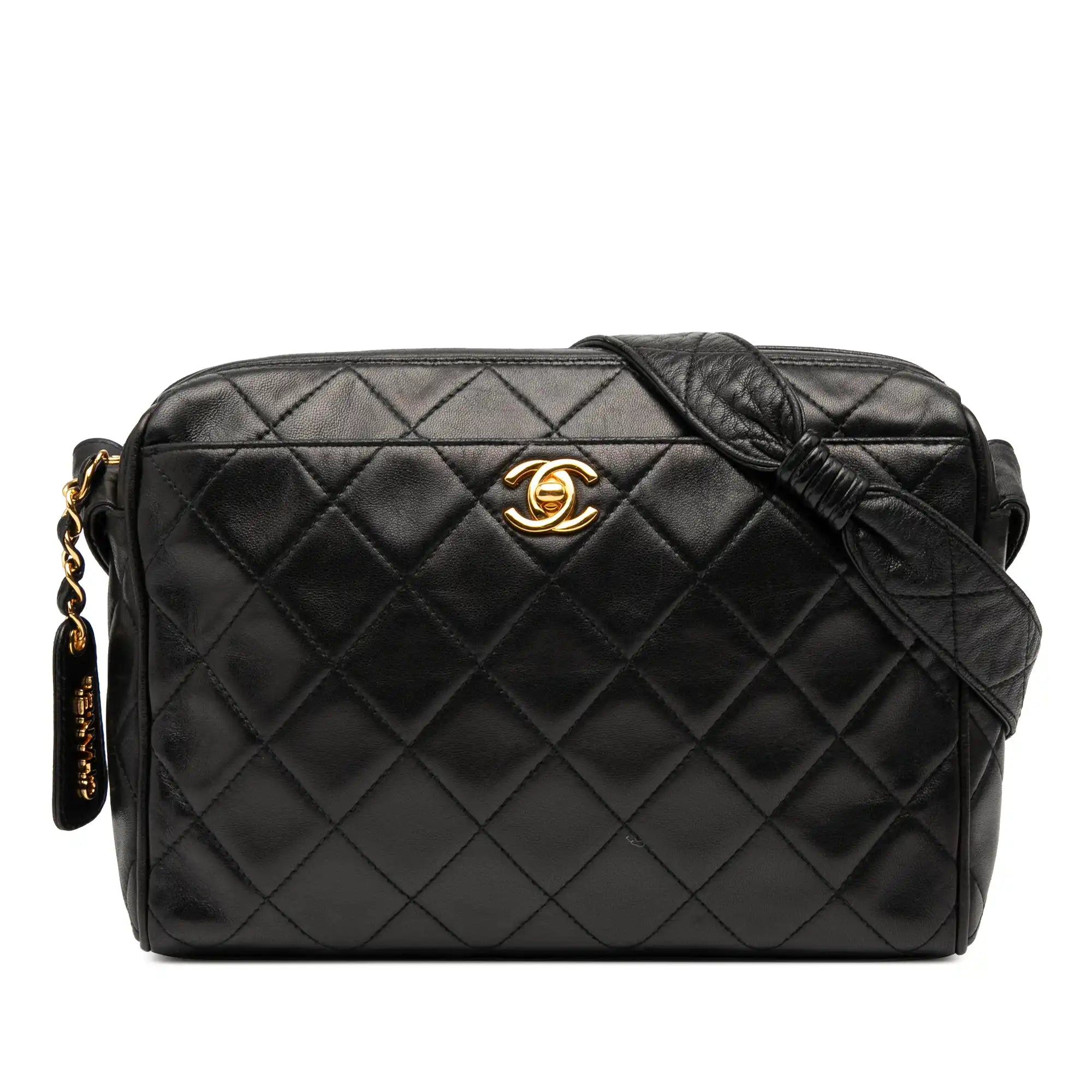 This crossbodyBag Features a quilted lambskin body, a braided chain shoulder strap, a tassel detail, a top zip closure, a front slip pocket, and interior zip and slip pockets.