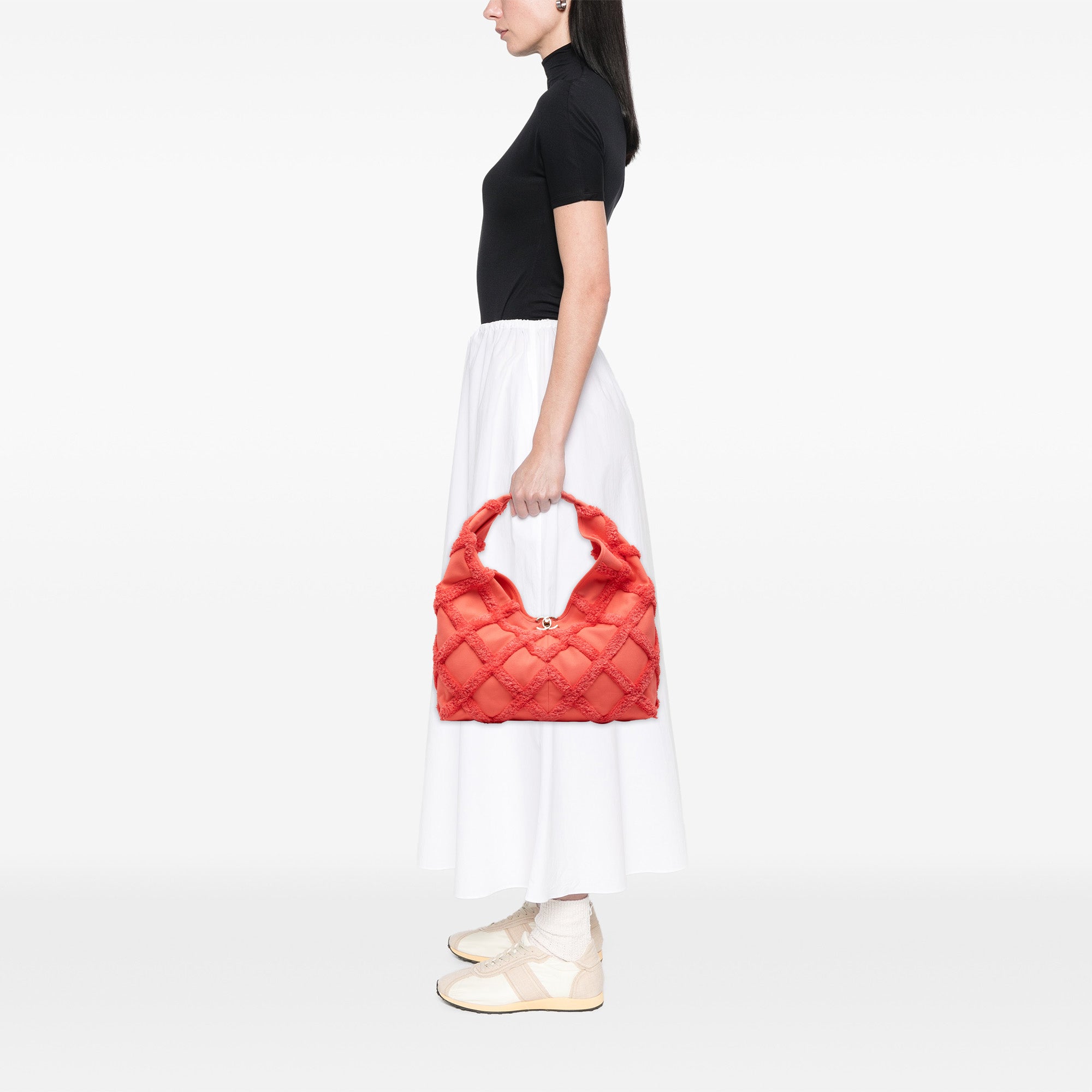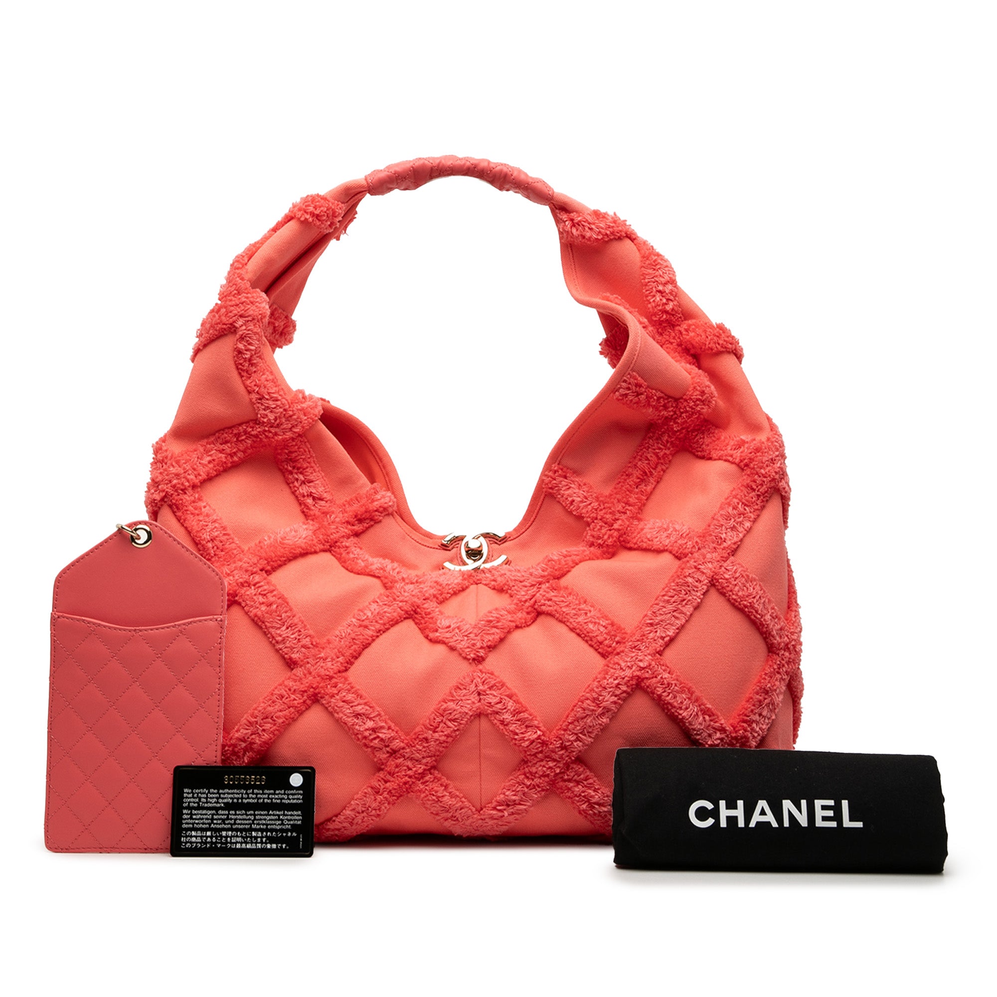 Die Chanel Large Cotton Canvas CC Embrace Hobo Bag interpretiert die Hobo-Silhouette mit der typischen Chanel-Ästhetik. Der grosszügige Körper aus Baumwoll-Canvas verleiht dem Modell eine entspannte, moderne Note, während die weiche Linienführung und das dezente Branding die Tasche klar im Haus Chanel verankern. Der flache Schulterriemen sorgt für einen ruhigen Fall am Körper und unterstreicht den lässig-eleganten Charakter.
