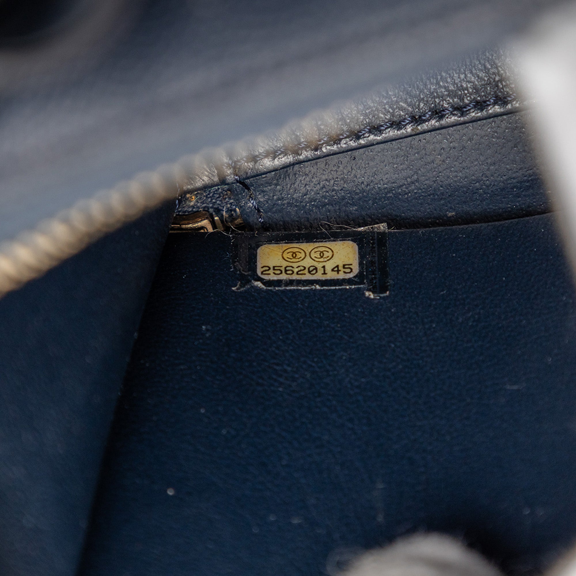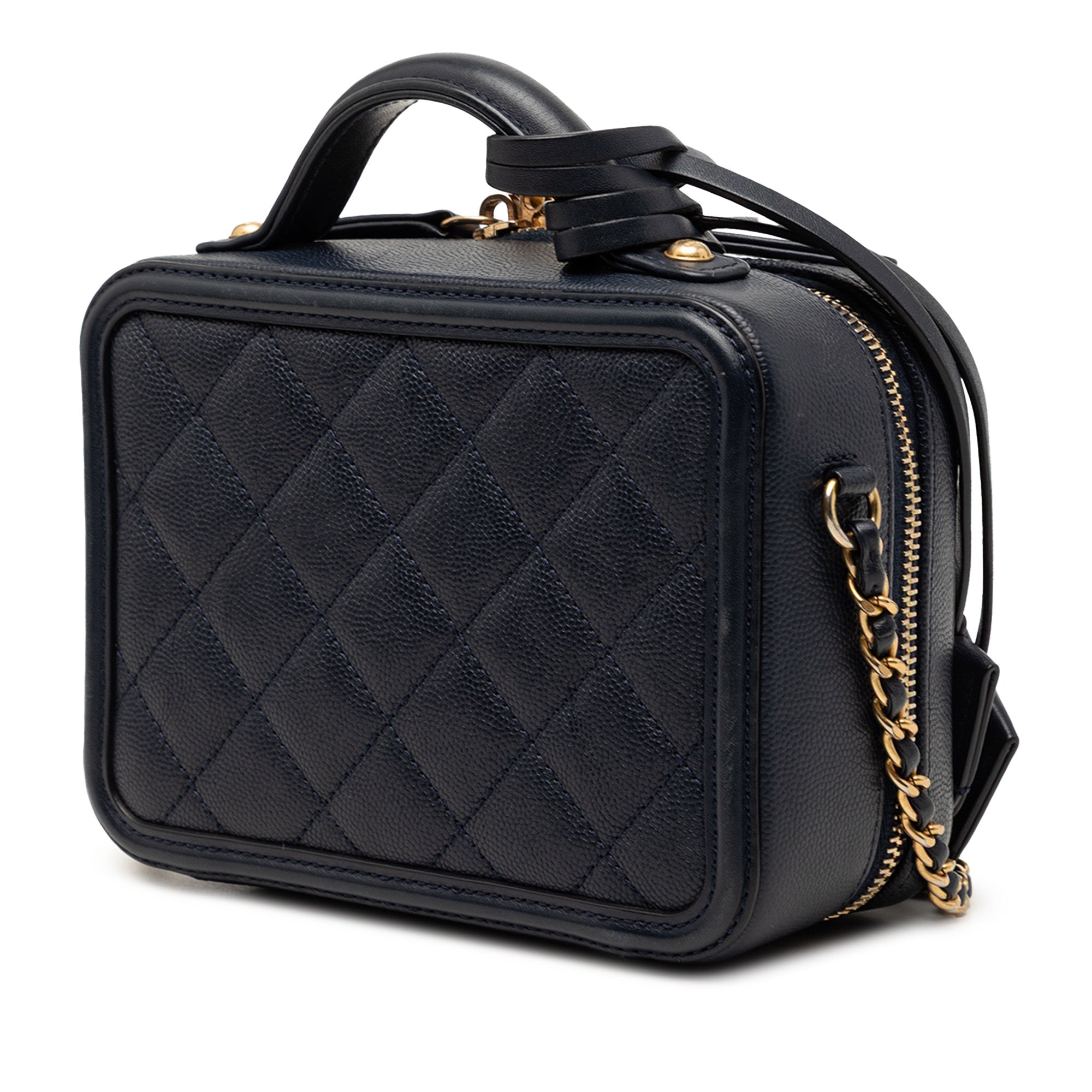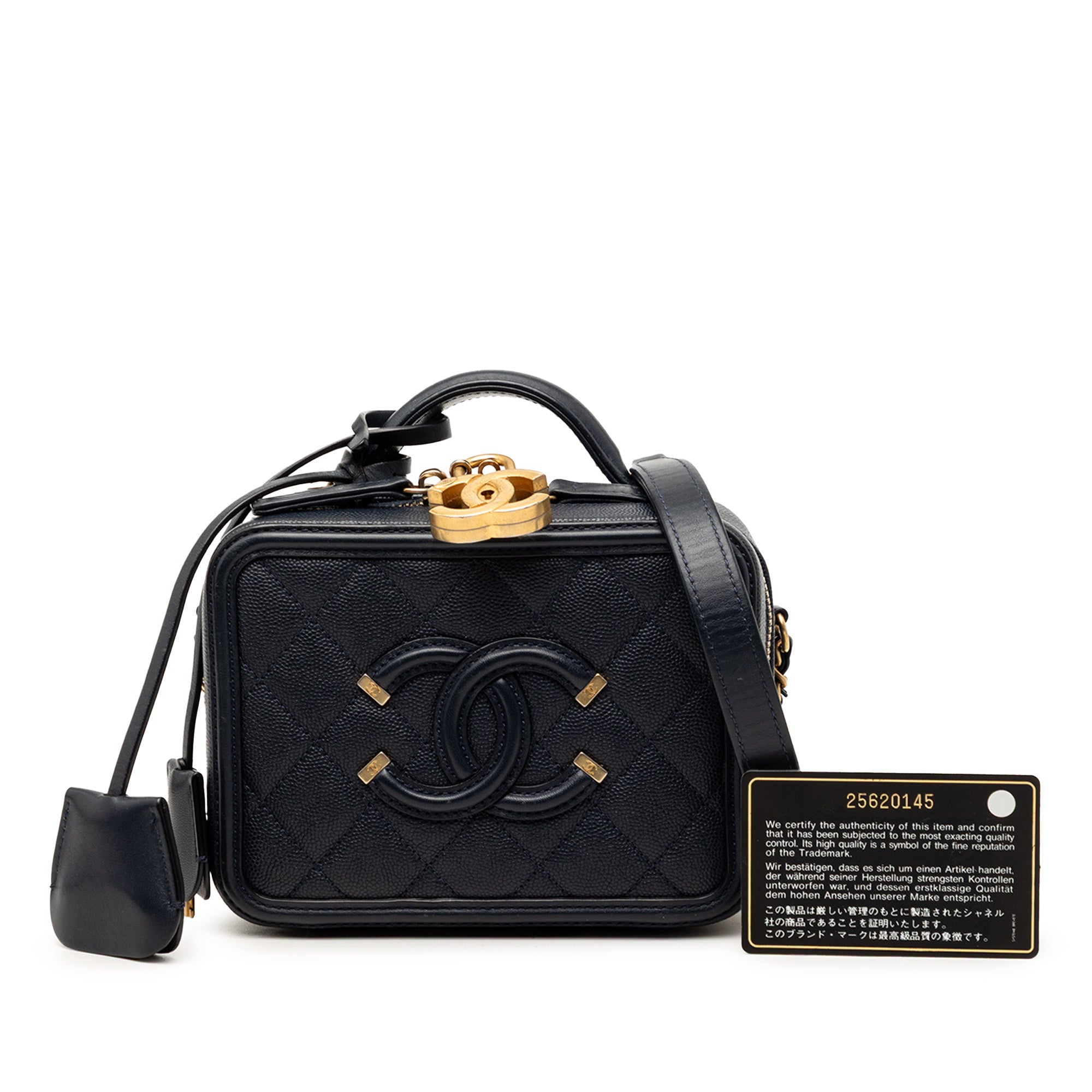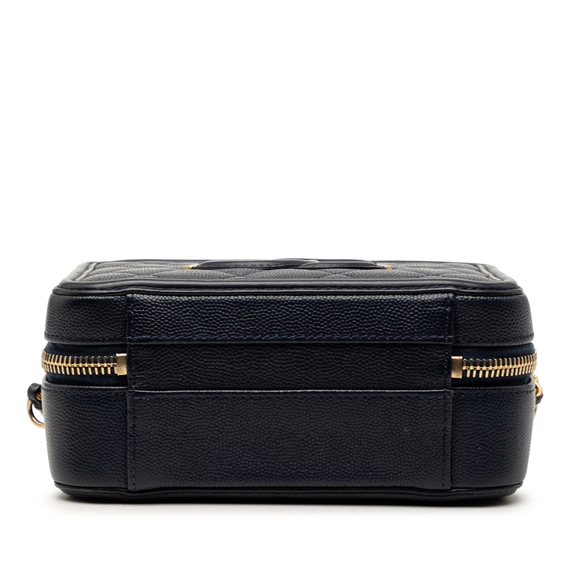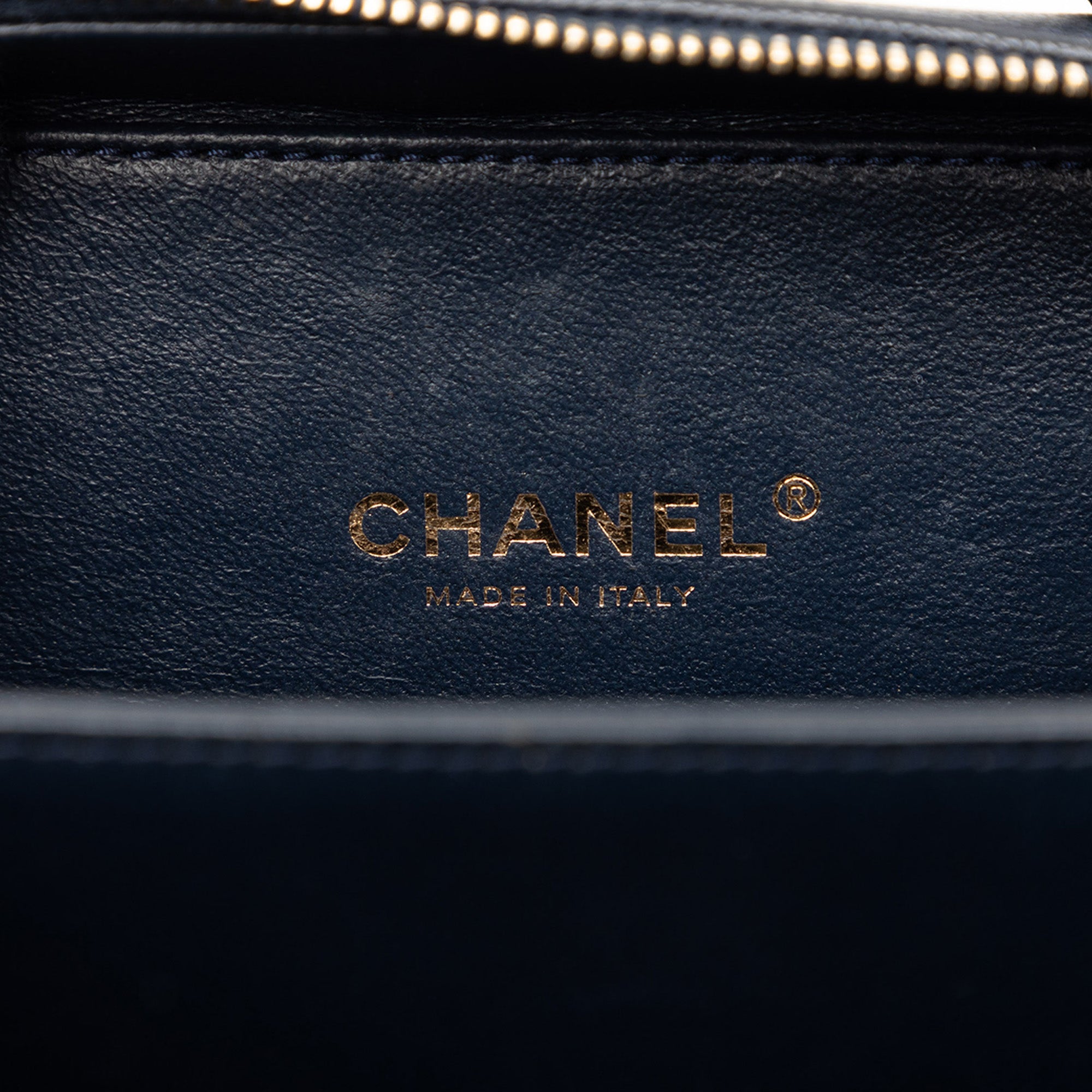 Chanel CC Filigree Vanity Case Small Blue Caviar