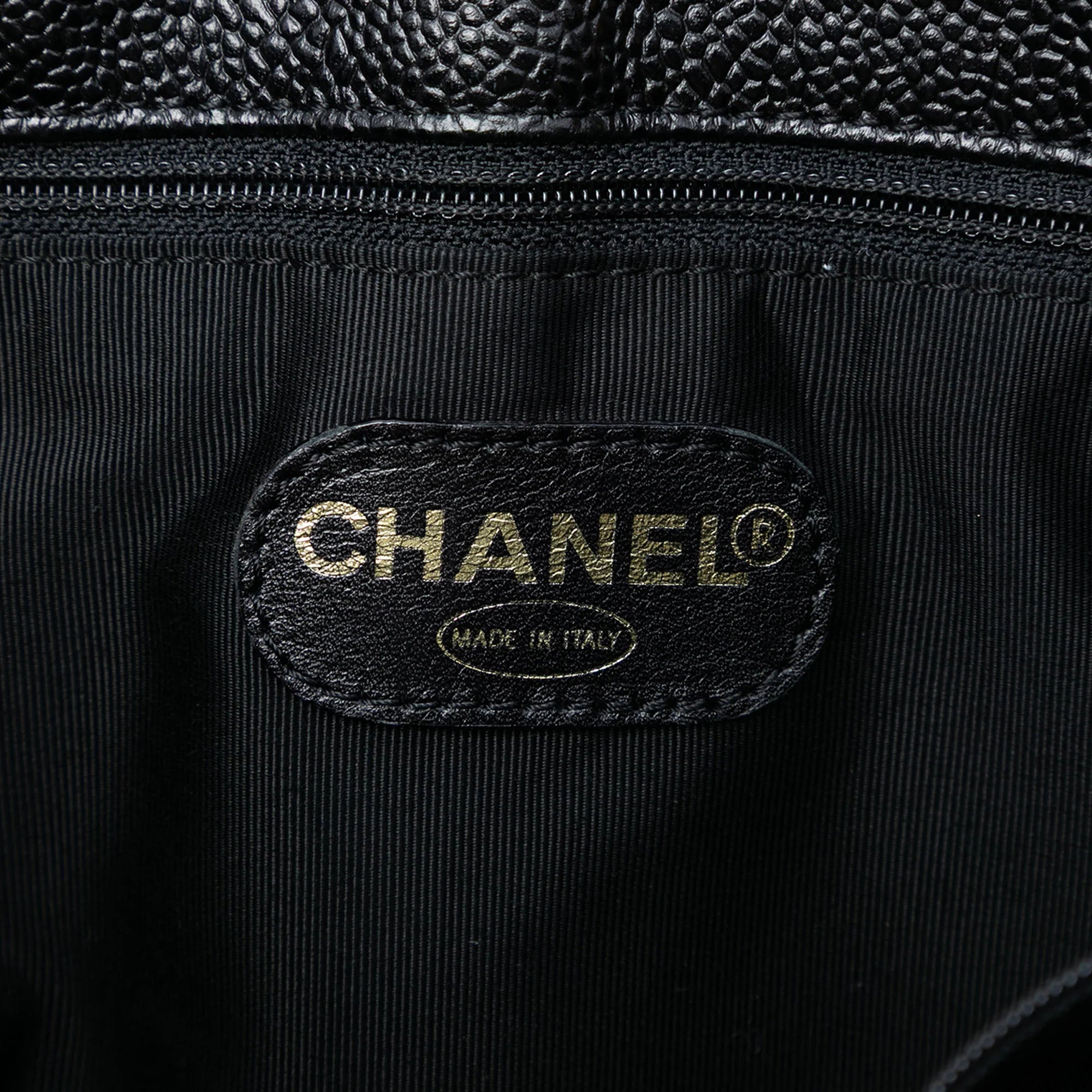 Ready for every day! This ingenious Chanel CC shoulder bag was made from Chanel's finely textured Caviar Leather made in a black version. The Bag has CC quilting on the front, gold details, a shoulder strap with gold chain elements and continuous leather straps, a gold zipper with a Tag at the top opening and a zippered compartment in the interior. The Bag is best worn over the shoulder.