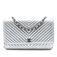 Chanel Wallet On Chain Silver Chevron Lambskin