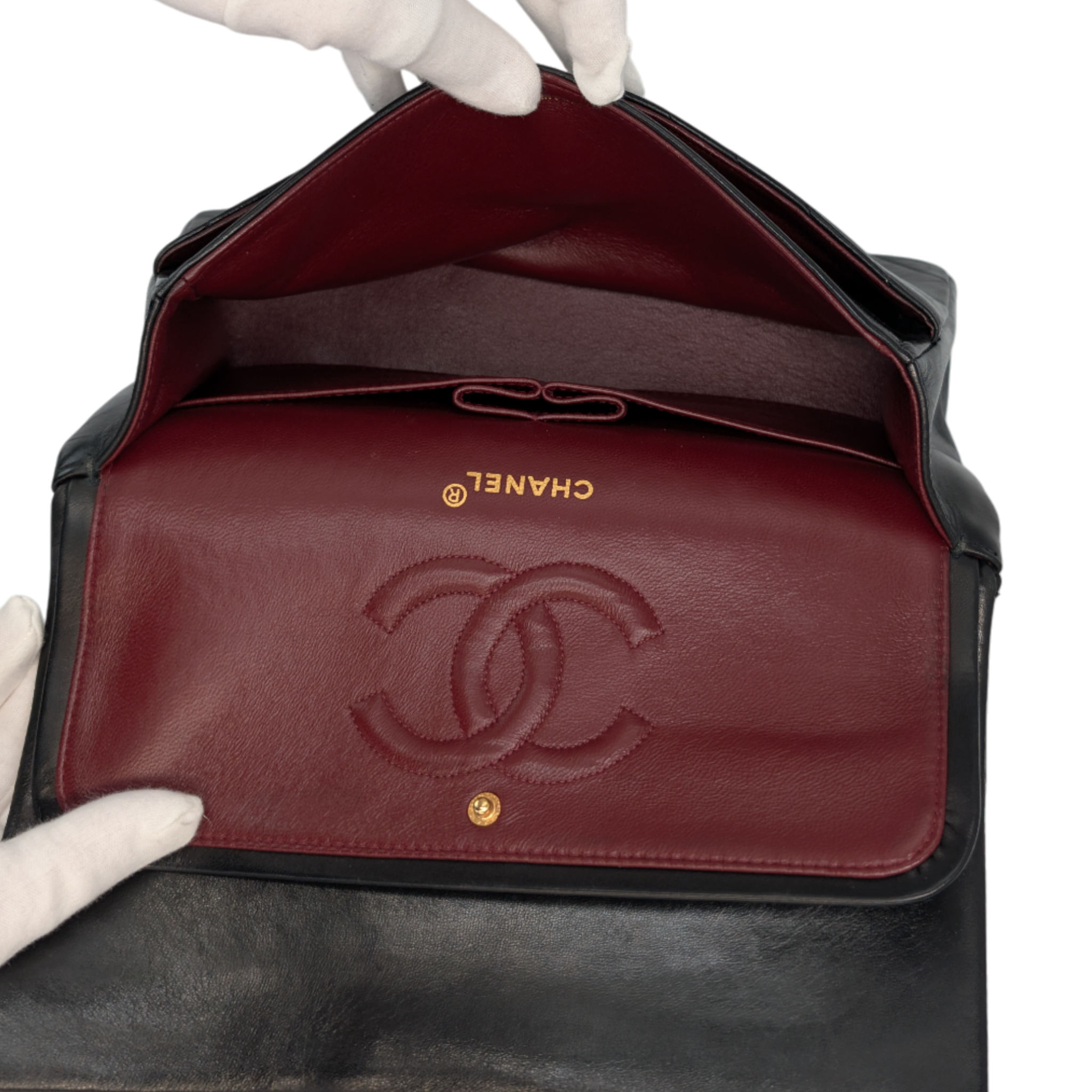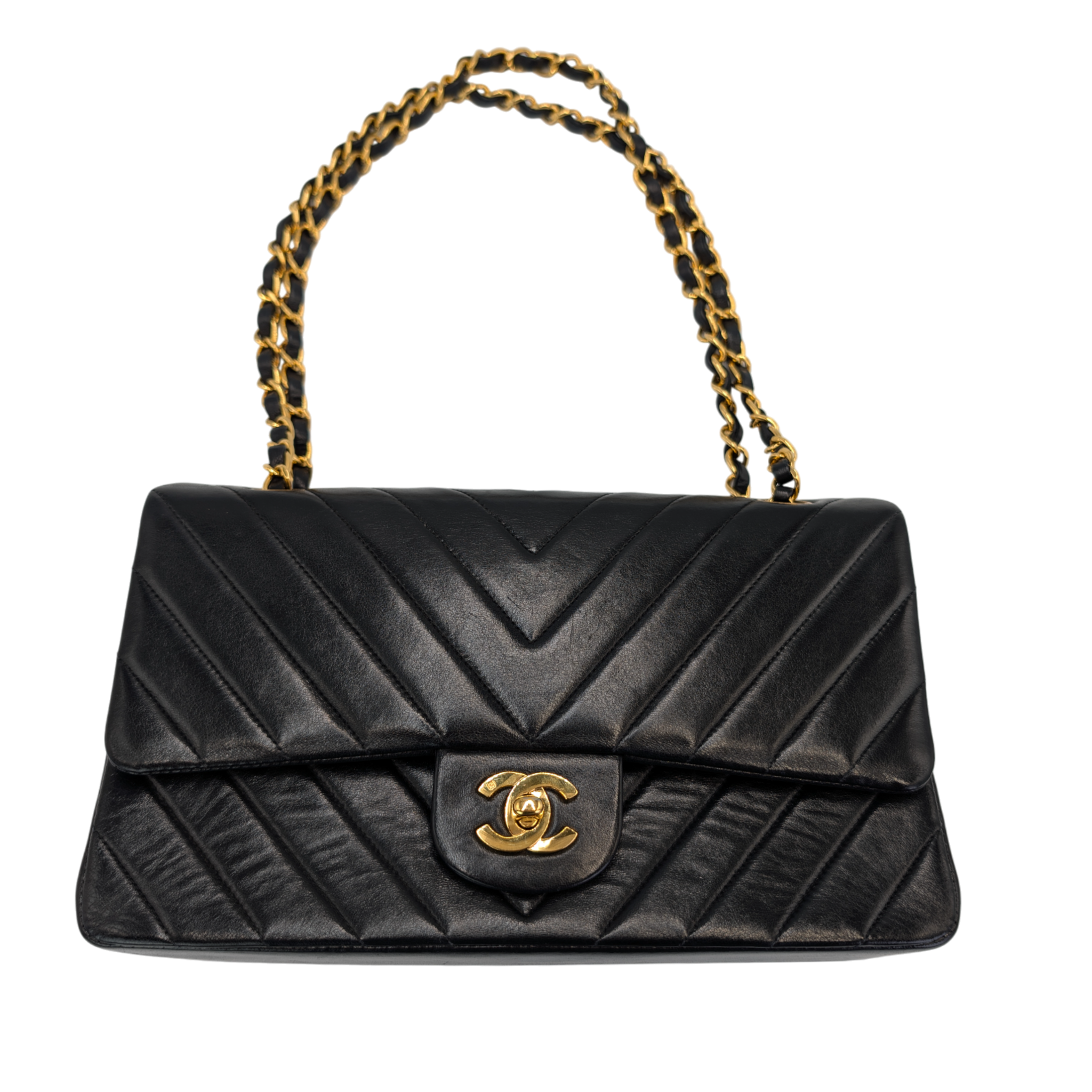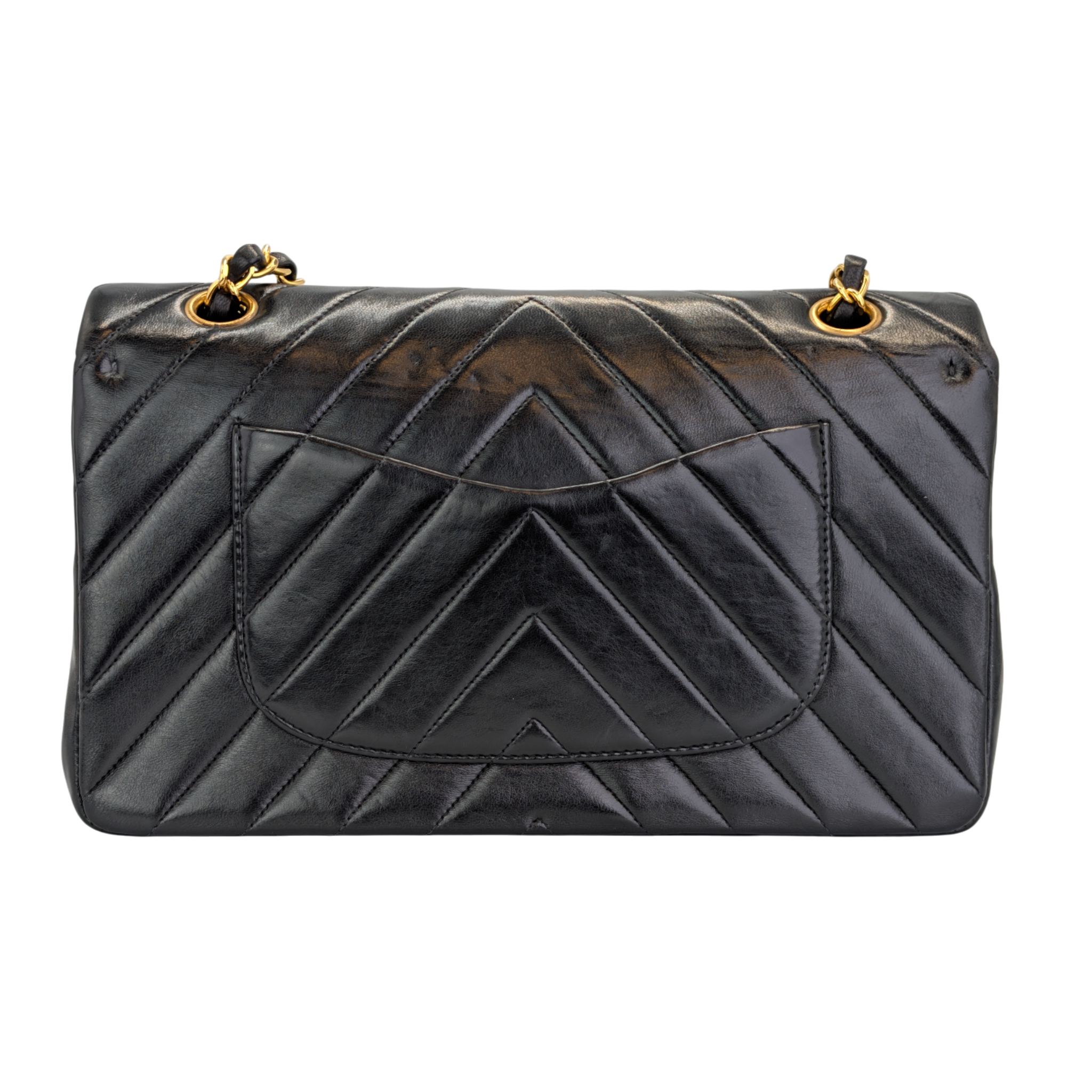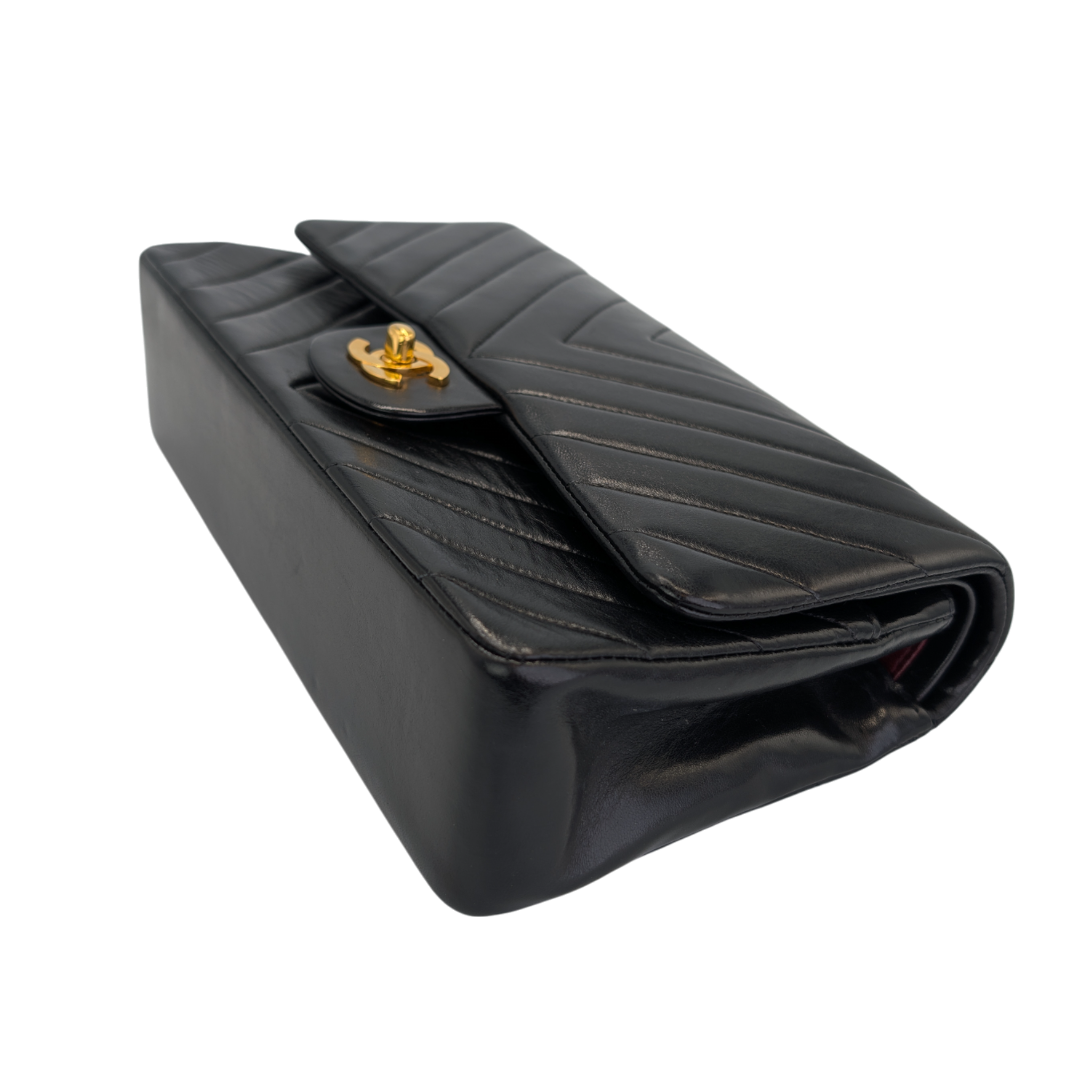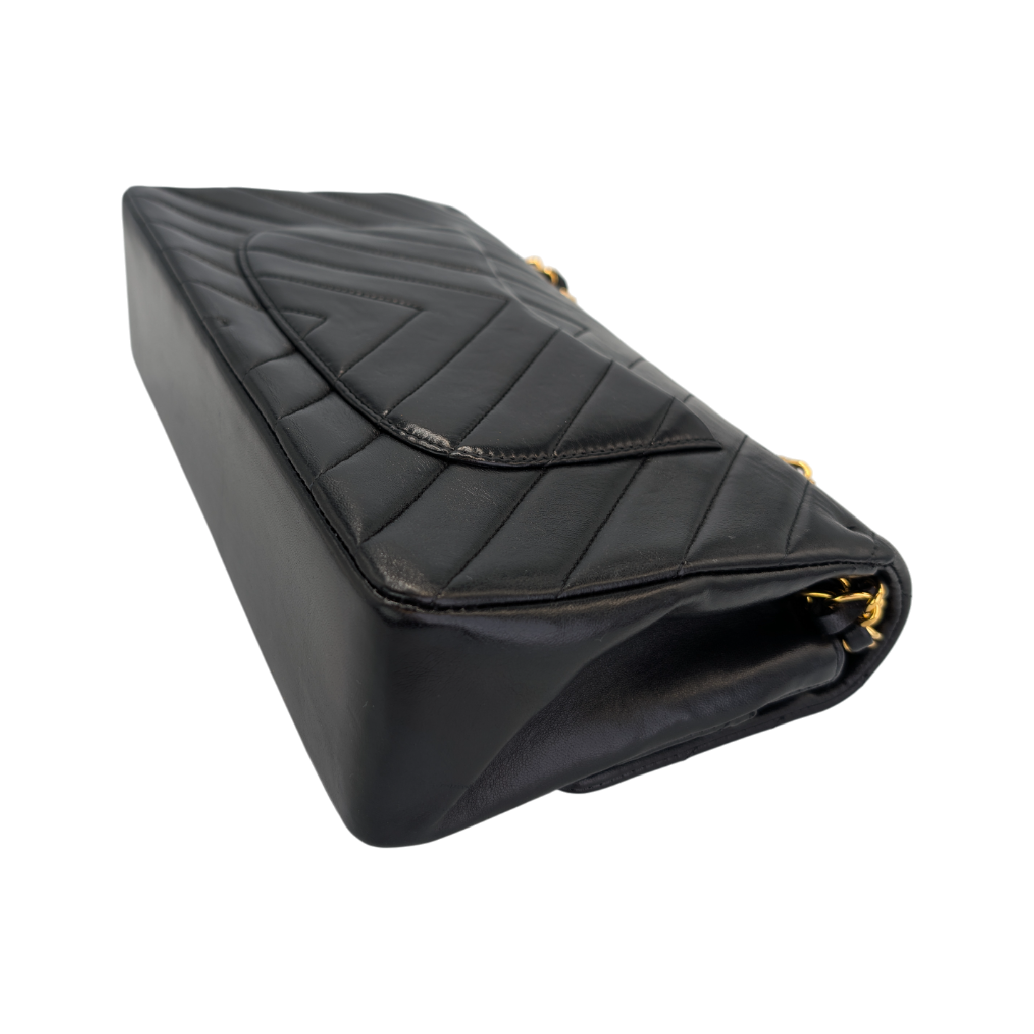 Condition: General light wear on the leather and some light pressure marks are visible. The quilted chevron lines are beautifully defined and the shape is nice and solid. There are slight signs of wear on the corners. The hardware shines very nicely and only has light scratches. There are slight pressure marks on the inner flap. The interior has minor scratches but is impeccably clean
