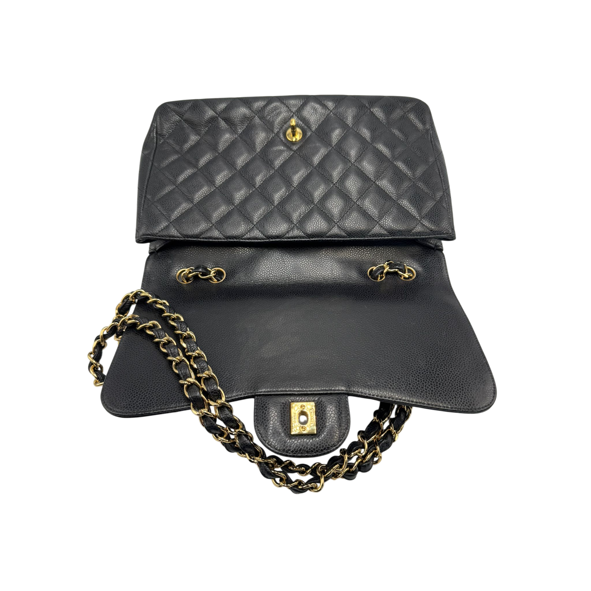 Chanel Classic Single Flap Jumbo Black Caviar Gold