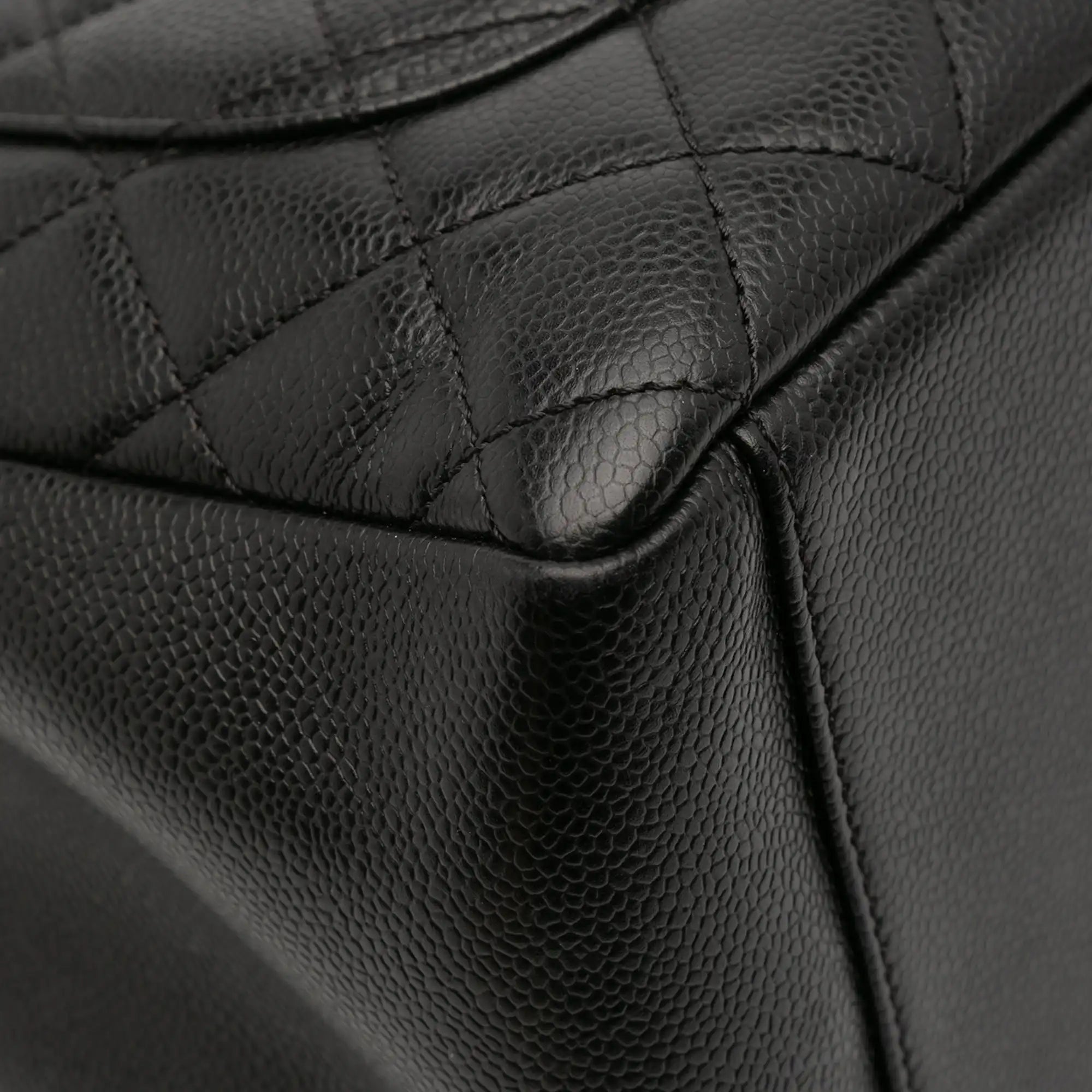 The Chanel Grand Shopping Tote in Caviar leather is a classic that has unfortunately been discontinued since 2015. The extraordinary black of the robust Caviar leather is wonderfully complemented by the silver sheen of the hardware. There is a practical open compartment on the back. The interior is very versatile with two compartments separated by a zippered compartment in the middle. There is another zipped compartment on one side and an open slip pocket on the other.