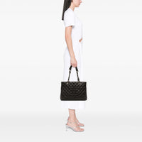 The Chanel Grand Shopping Tote in Caviar Leather is a classic, which unfortunately has not been manufactured since 2015. The extraordinary black of the robust Caviar The leather is wonderfully complemented by the silver shine of the hardware. There is a practical open compartment on the back. The interior is very versatile with two compartments which are separated by a zipper compartment in the middle. There is another zippered compartment on one side and an open pocket on the other.