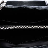 The Chanel Grand Shopping Tote in Caviar Leather is a classic, which unfortunately has not been manufactured since 2015. The extraordinary black of the robust Caviar The leather is wonderfully complemented by the silver shine of the hardware. There is a practical open compartment on the back. The interior is very versatile with two compartments which are separated by a zipper compartment in the middle. There is another zippered compartment on one side and an open pocket on the other.