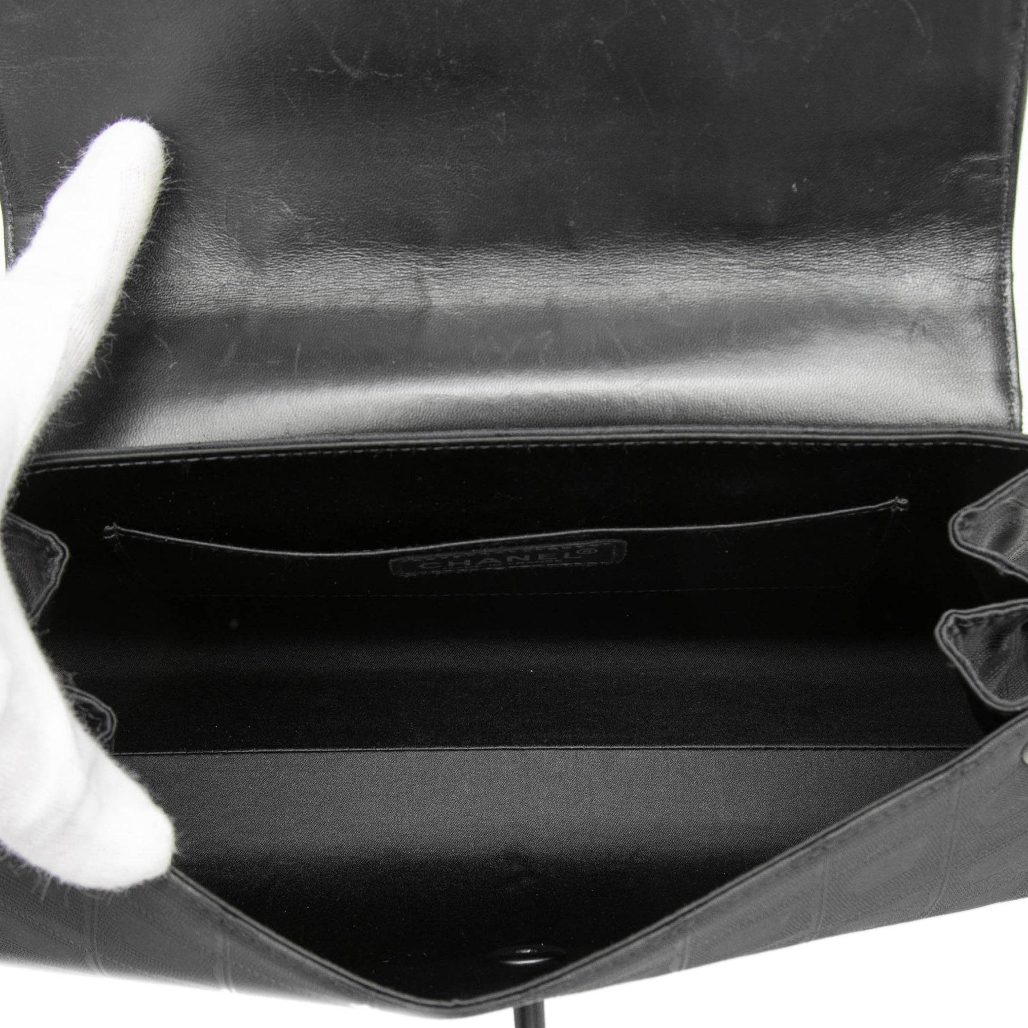 Condition: The item is in very good Condition with slight signs of wear on the exterior material, particularly on the sides, corners, and strap, as well as fine scratches on the back. There are a few light stains on the top and front sections, as well as slight discoloration on the bottom. The hardware shows slight scratches. Inside, there is slight wear and scratches on the lining, as well as minor stains and scratches on the inner pocket.