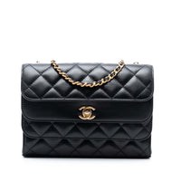 Die Chanel CC Quilted Calfskin Triple Flap ist eine elegante Schultertasche mit klarer Linienführung und dem ikonischen Rautensteppmuster. Gefertigt aus weichem Kalbsleder, wirkt die Silhouette strukturiert und zugleich geschmeidig. Der lederdurchflochtene Kettenriemen liegt dank Lederauflage angenehm auf der Schulter und unterstreicht den charakteristischen Chanel-Ausdruck. Auf der Front setzt das CC-Drehschloss einen dezenten, sofort erkennbaren Akzent.