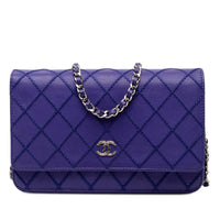 Chanel Wallet On Chain Blue Calfskin Silver