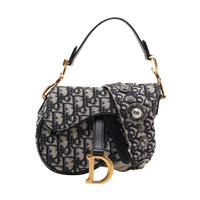 Christian Dior Oblique Saddle Bag Canvas Leather 2-Way