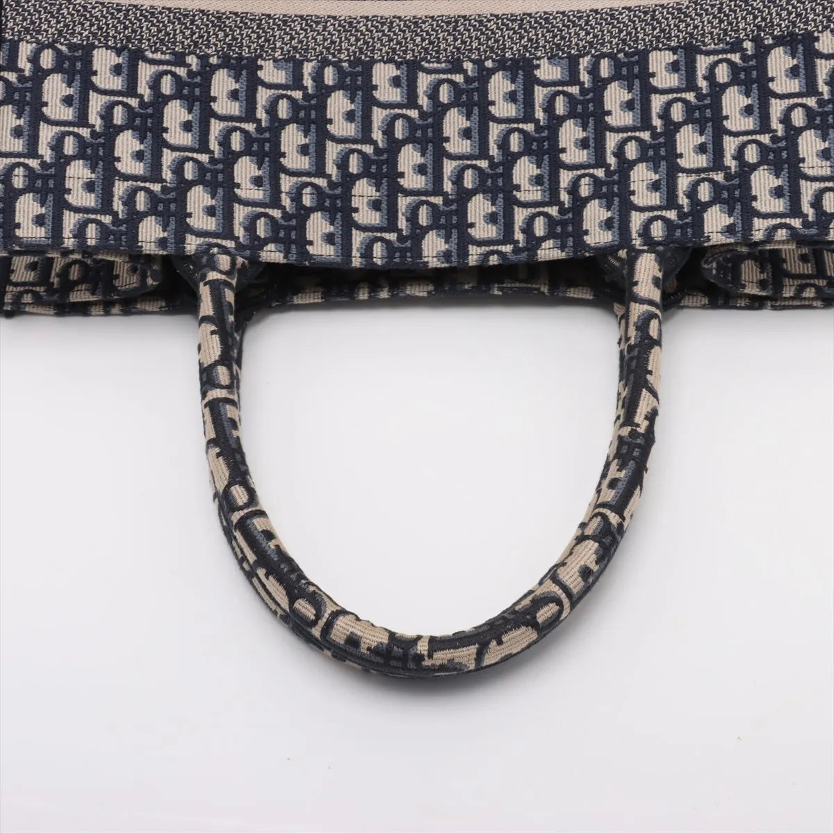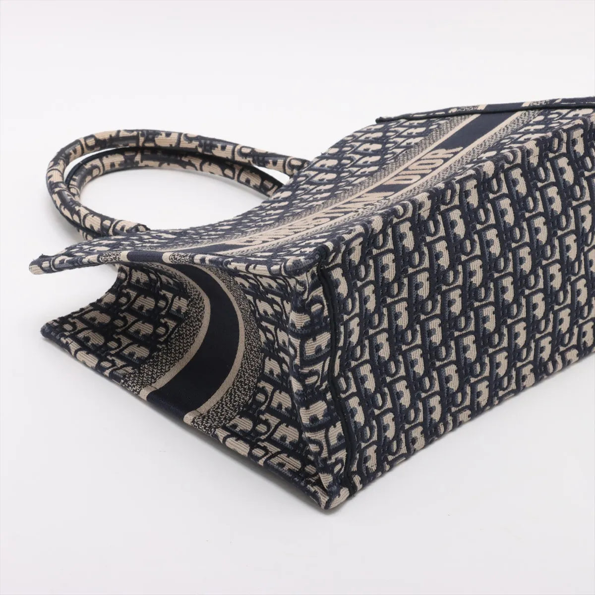 This model is presented in classic navy blue, one of the most popular color variations of the Book Tote. The sturdy canvas construction ensures that it retains its shape, while the clean lines and striking CHRISTIAN DIOR signature round off the design. Thanks to its structured shape, the Bag can be worn comfortably in the hand or on the forearm.