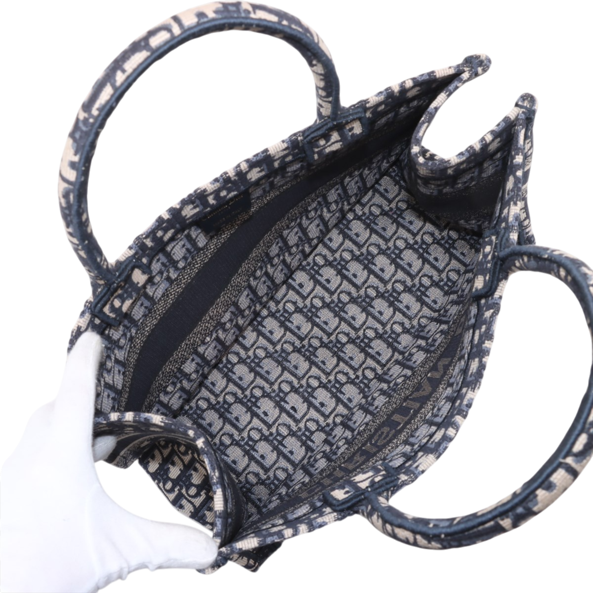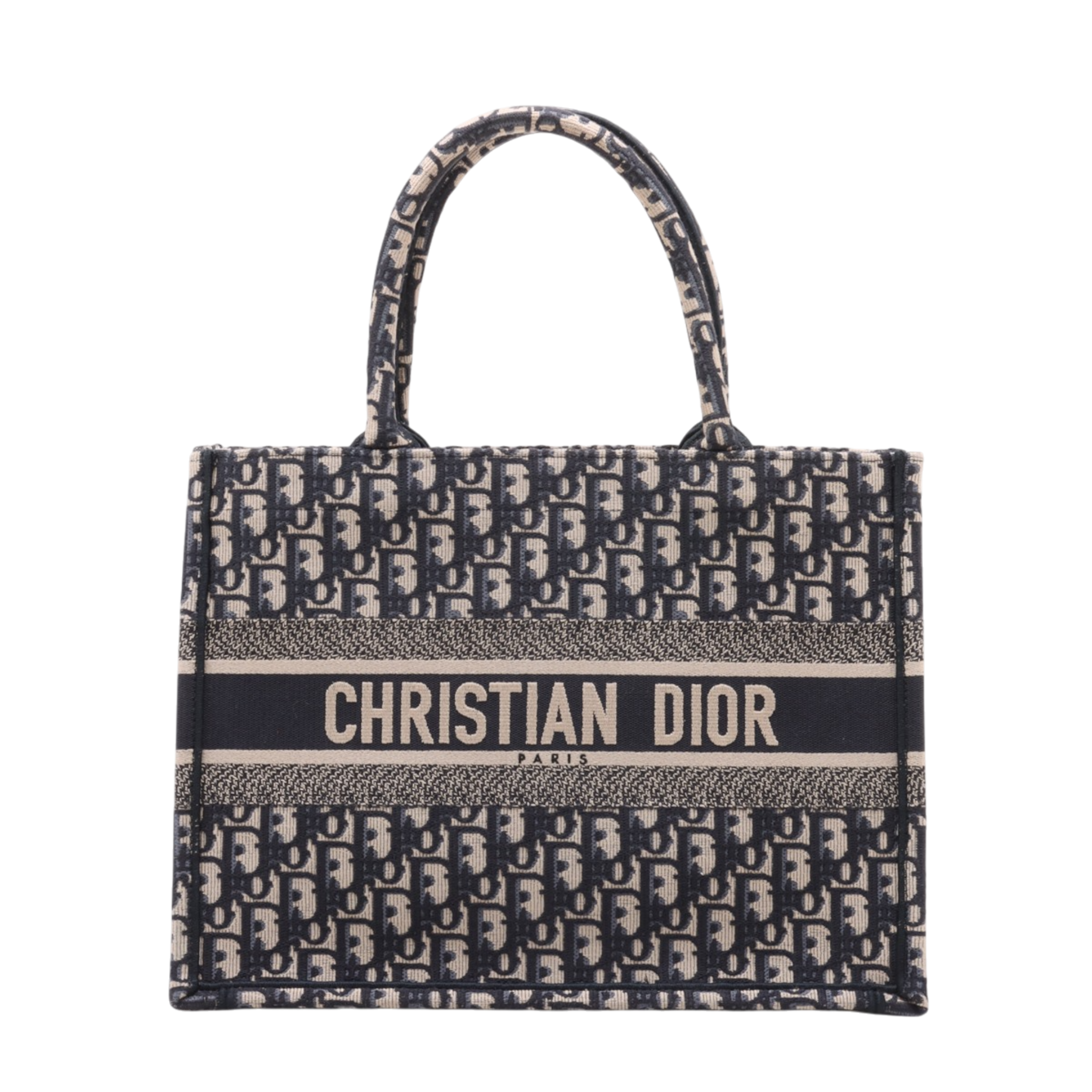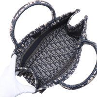 This model is presented in classic navy blue, one of the most popular color variations of the Book Tote. The sturdy canvas construction ensures that it retains its shape, while the clean lines and striking CHRISTIAN DIOR signature round off the design. Thanks to its structured shape, the Bag can be worn comfortably in the hand or on the forearm.