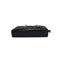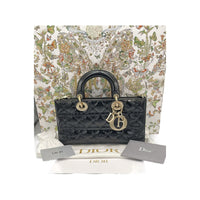 An iconic model from Dior - the Lady D-Joy is presented here in elegant black patent leather, which interprets the brand's classic look in a modern way. The elegant, horizontal silhouette features signature "Cannage" stitching and is accented with shimmering "D.I.O.R."Tag stylishly complemented in silver-colored hardware. Whether as an elegant accompaniment for the evening or as a stylish statement during the day - these Bag combines Parisian chic with timeless elegance.